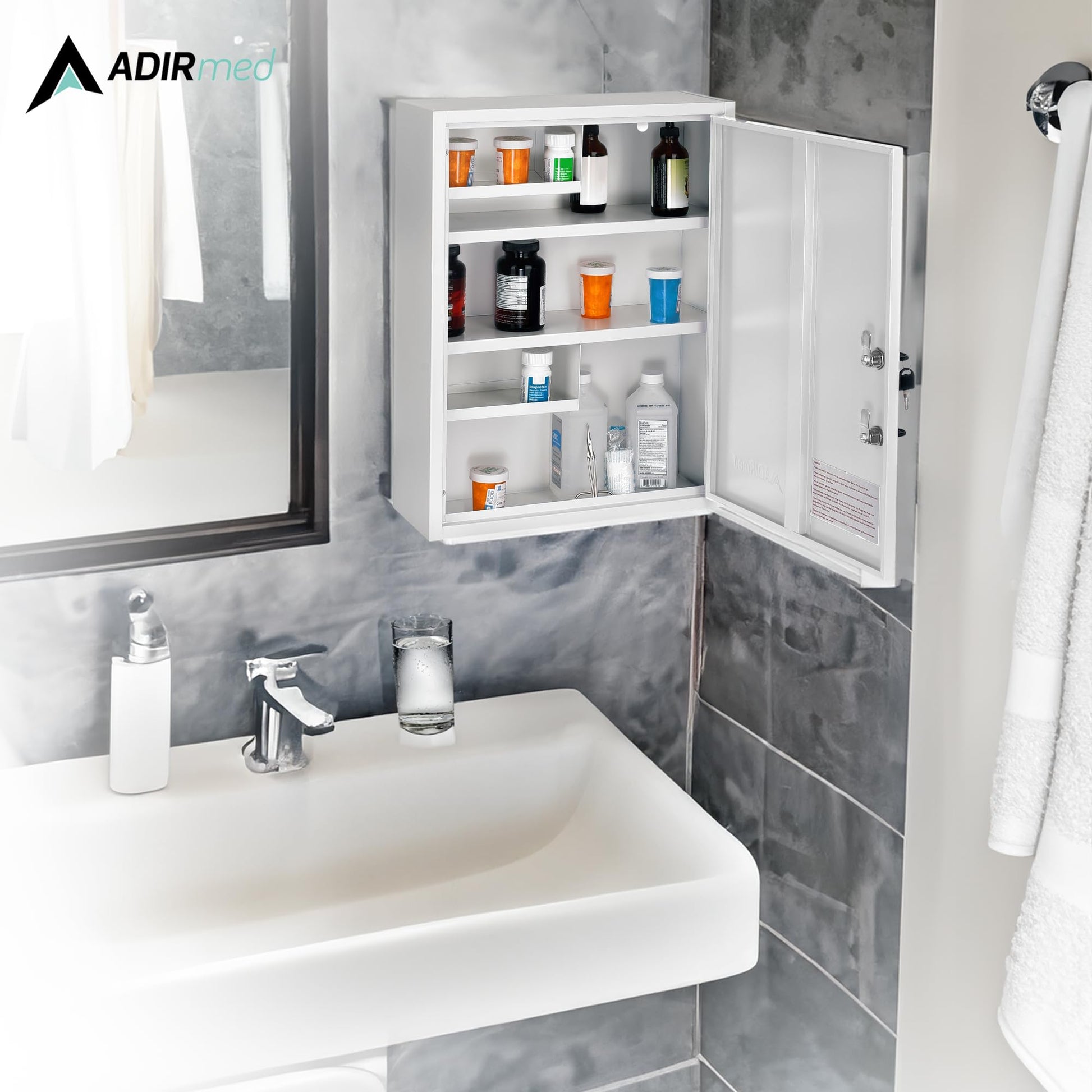 - VERSATILE - This wall mounted lockable medicine cabinet is suitable for any setting where medical supplies need to be stored safely, including home, office, school, hospitals, clinics, and any other facility that keeps medicines, prescriptions, emergency meds and similar products.