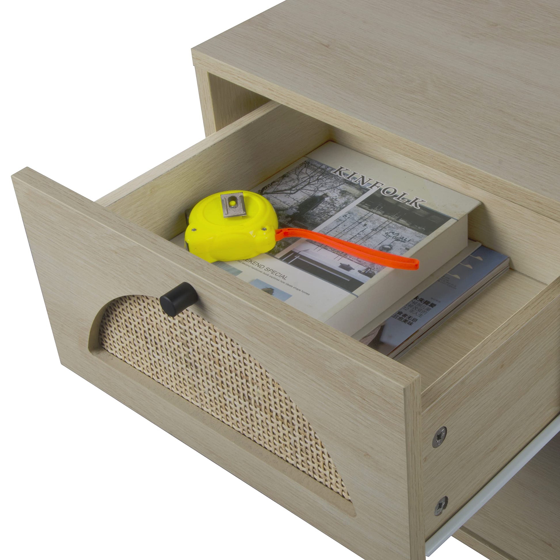- Nightstand with Drawer - This rattan table equips two rattan drawers for daily storage, making it more practical. And wood-finish tabletop is perfect for lamp, glasses, remote control, bedtime readings, etc. It offer large enough space to store your accessories, keep your bedroom living room organized and tidy. At the same time, the clean lines and natural tones is very eye catching in your room.