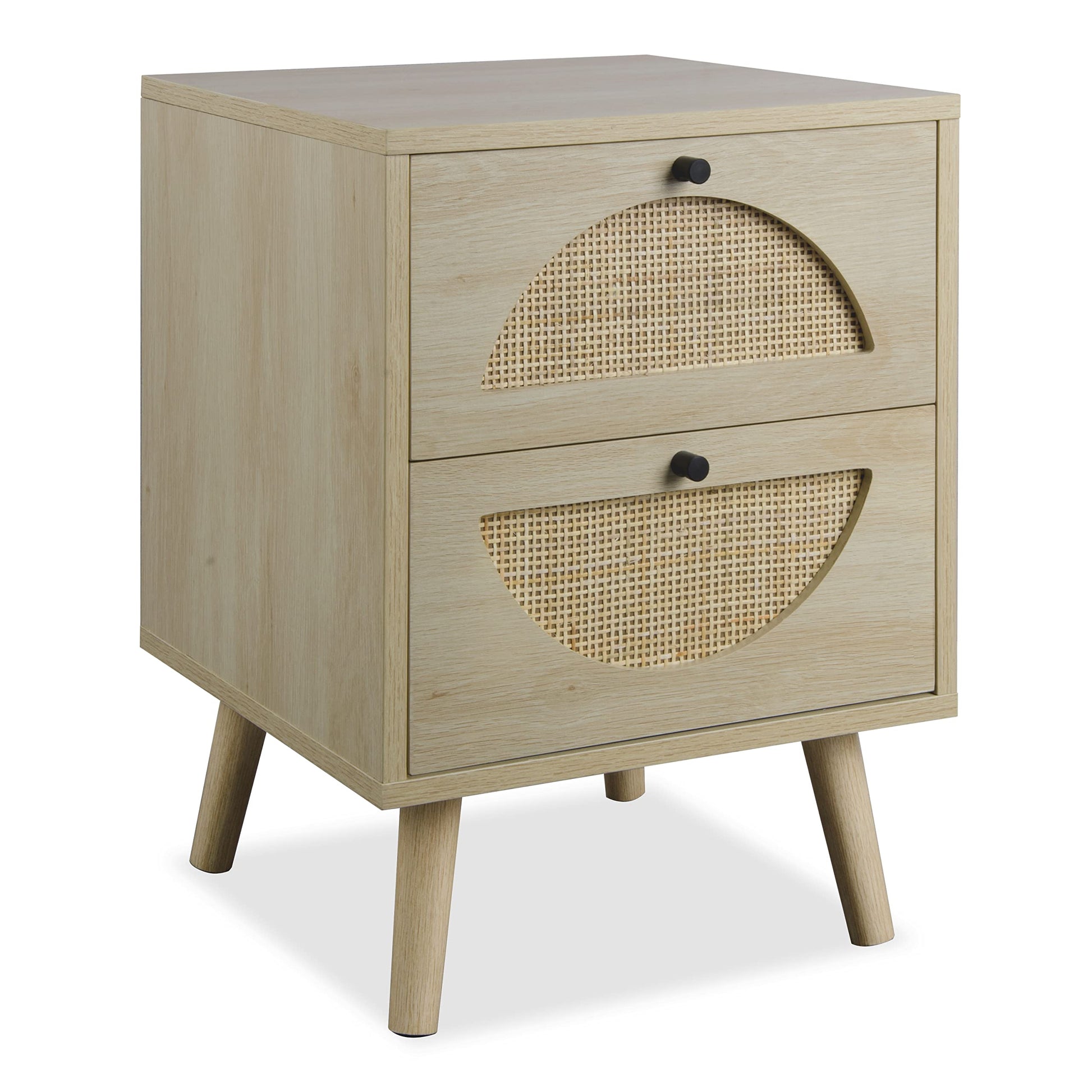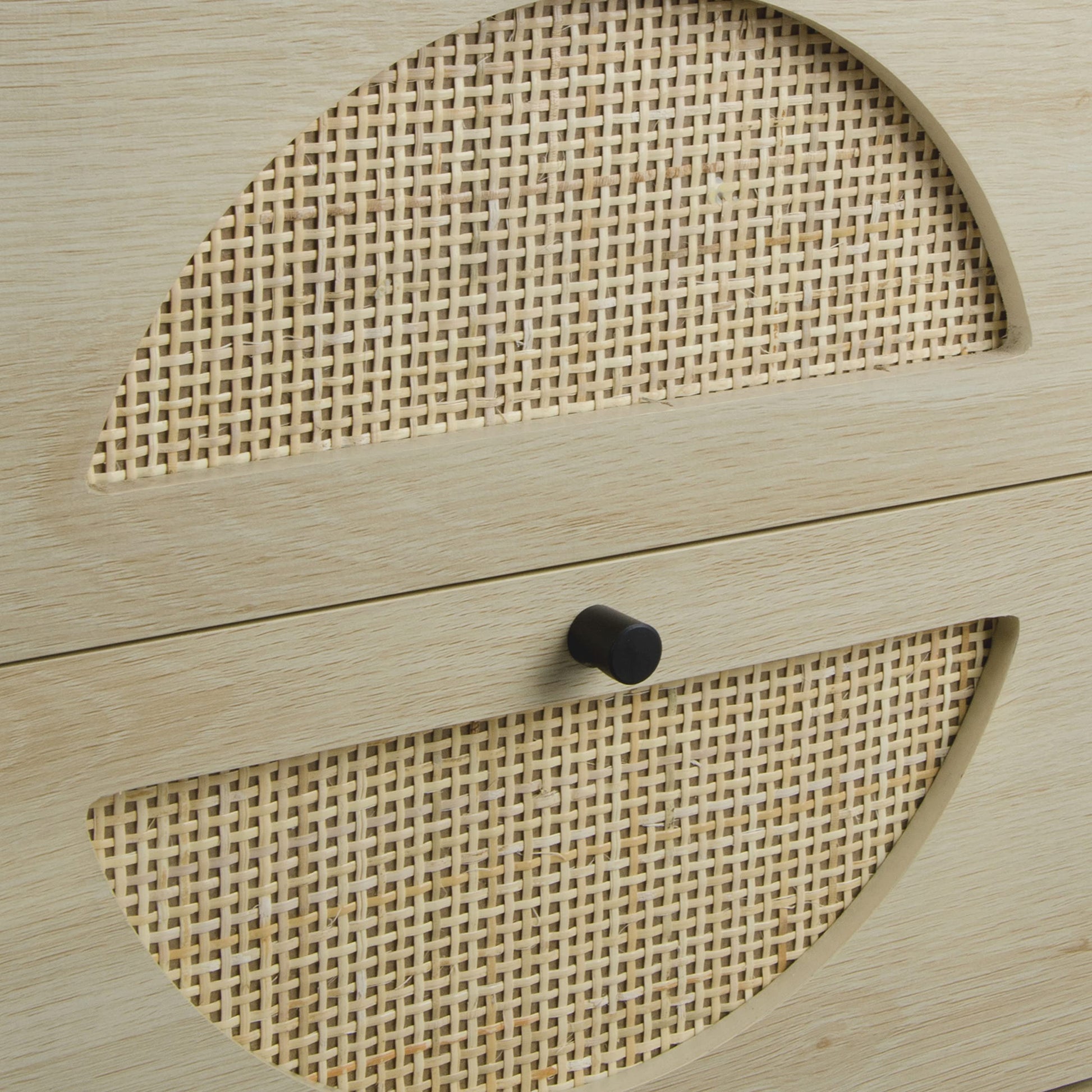 - Rattan Nightstand - The night stand with rattan decorated drawers are combination of modern and classic. The rattan end table adopts natural rattan with handmade weaving technology, the natural rattan not only has the effect of absorbing moisture and heat but also delivering perfect visual effect, add charming to your home. And the semicircular pattern embedded in the upper and lower drawers deepens the balanced visual effect, adding a cool and bohemian vibe.