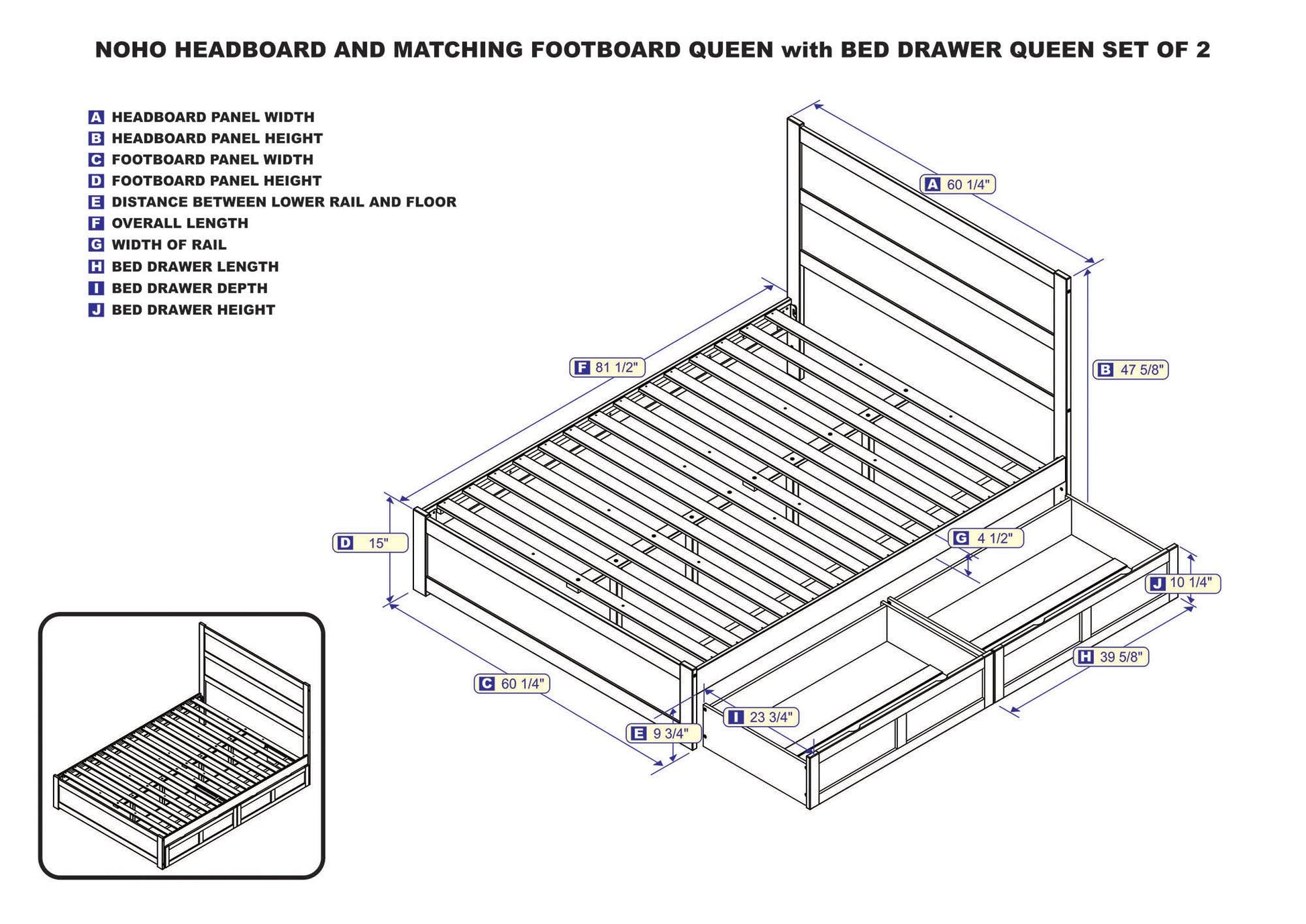 NoHo Queen Size Platform Bed with Footboard & Storage Drawers in Walnut