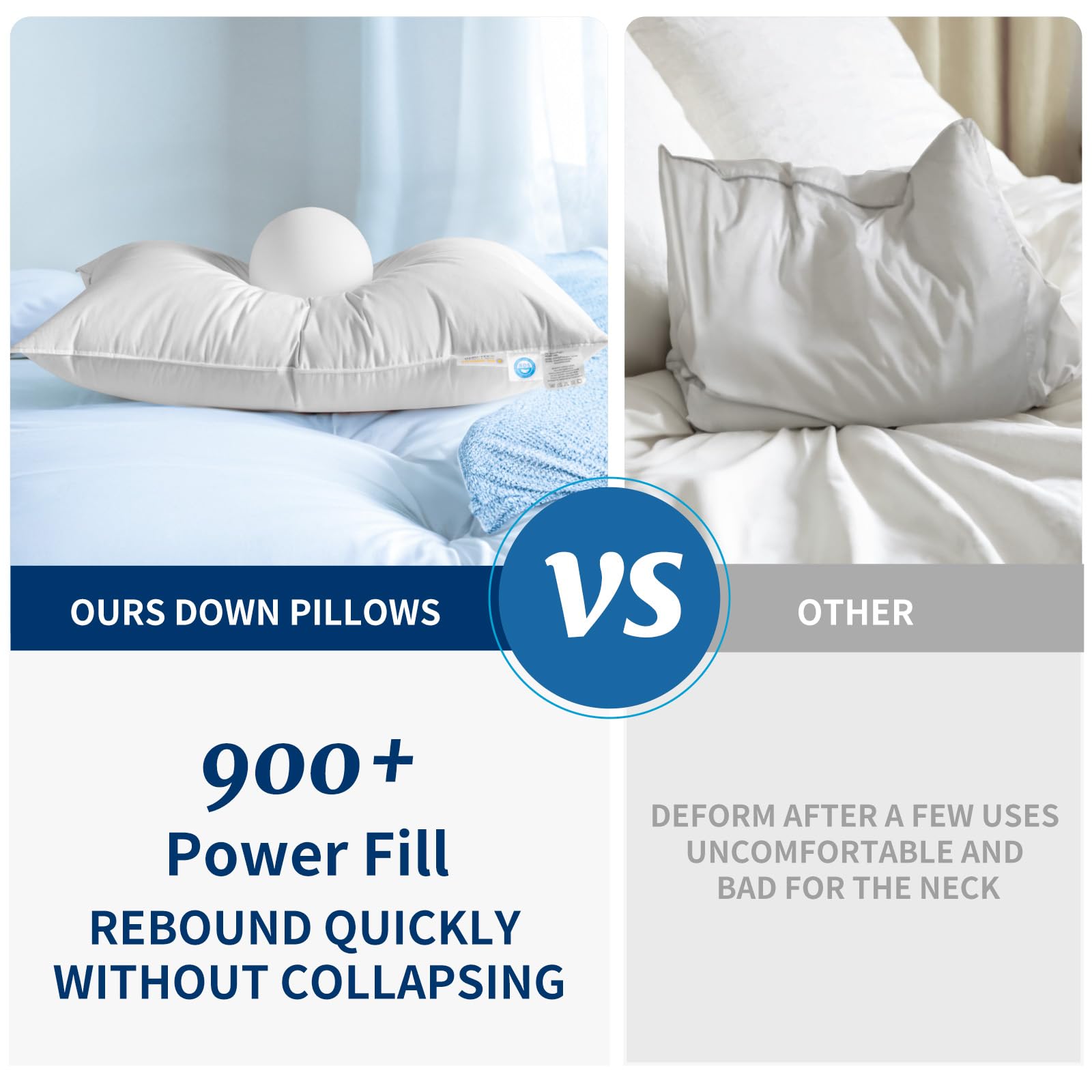 - PREMIUM FILL POWER - Experience pure luxury with Canadian white goose down pillow boasting an impressive fill power of 900. Goose down pillow is 80% goose down +20% goose feather and high-Density downproof fabric on the outside. It's like floating on a dreamy cloud every night. Drift off to sleep in ultimate comfort and wake up feeling refreshed, to enhance your sleep experience.
