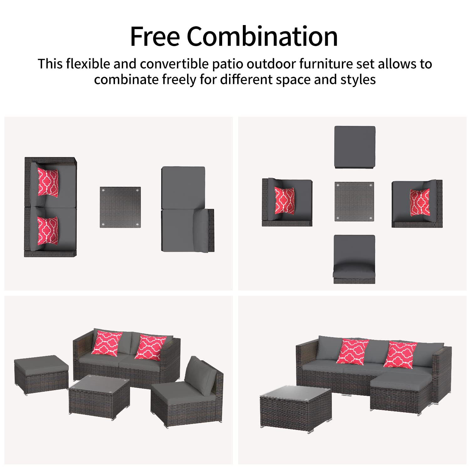 - Sectional Patio Furniture: This patio furniture set is adaptable and movable. There are at least 4 different combinations to meet your different needs and space