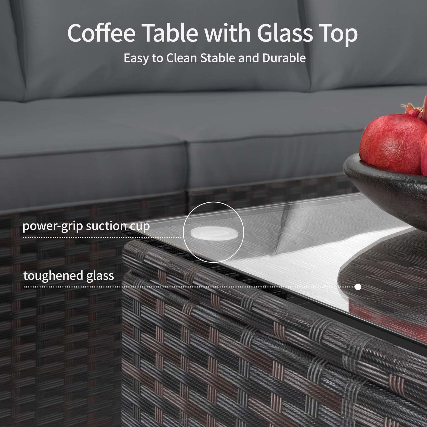 Aiho Outdoor Patio Furniture Sets All Weather Wicker Rattan Patio Conversation Set with Glass Table (Grey)