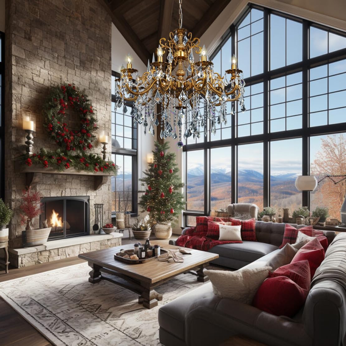 Crystal Chandeliers Antique Gold Farmhouse Chandelier Lighting for High Ceiling 10-Light
