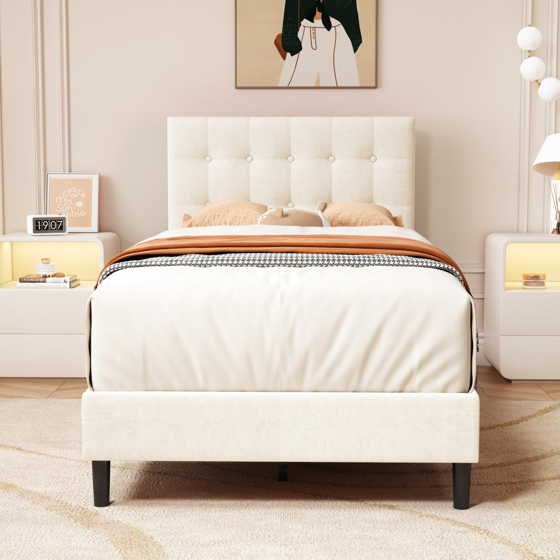 - No Box Springs Required: Mattresses can be placed directly on the wood slats, forgoing box springs saves even more money and time. This upholstered bed frame works with a variety of mattresses, including spring, memory foam, latex, or hybrid mattresses.