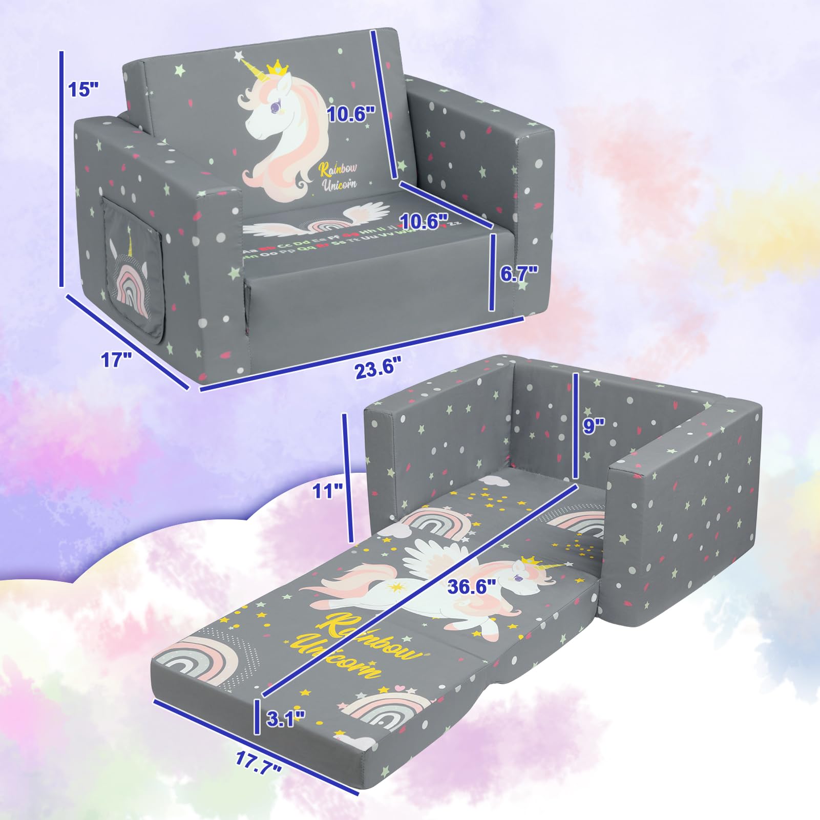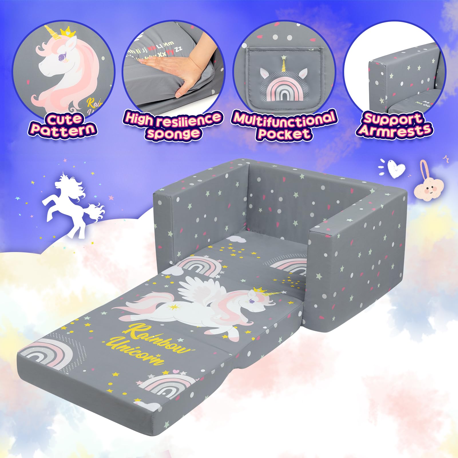 2-in-1 Flip Out Comfy Toddler Couch, Lovely Kids Chair Convertible Sofa to Lounger