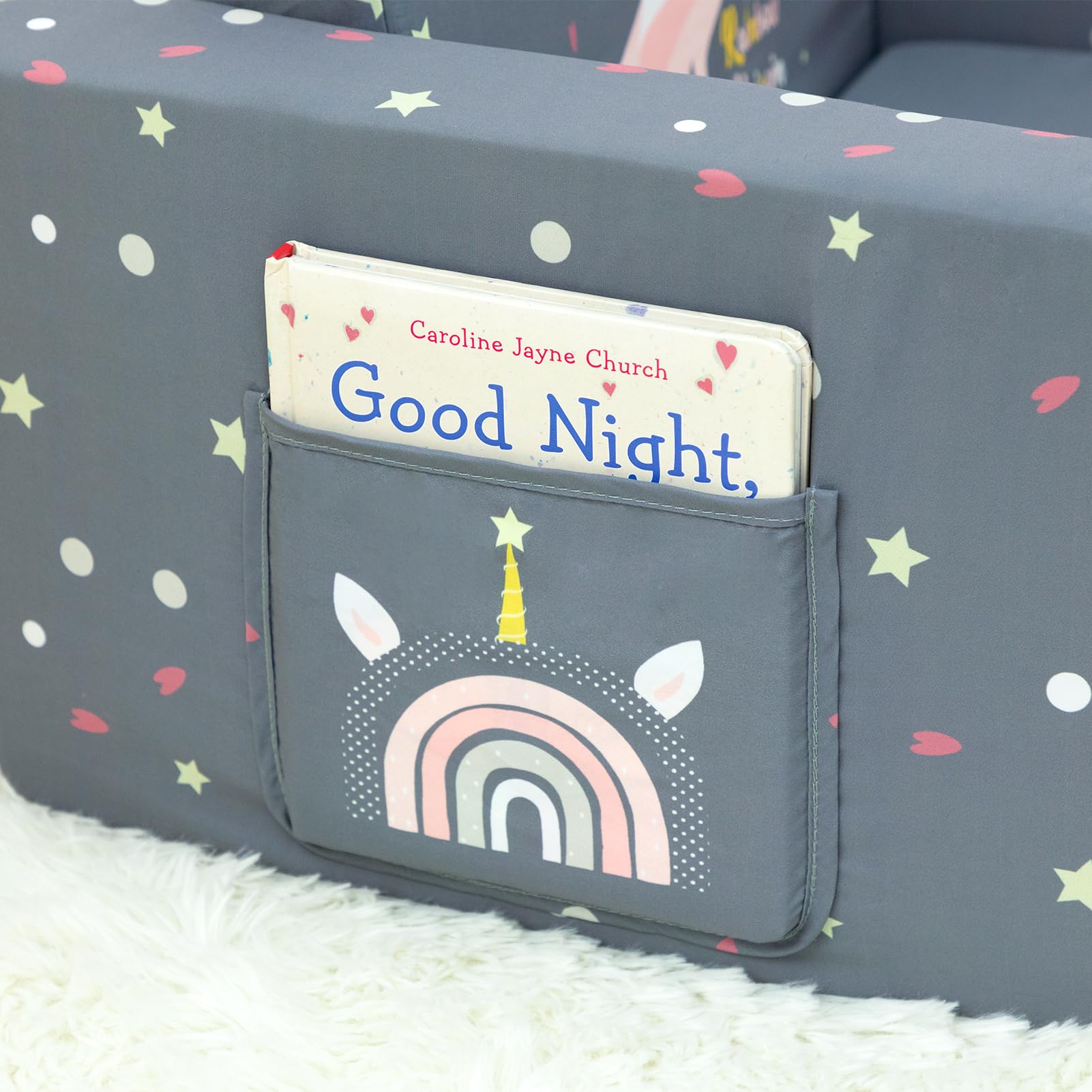- Sit and read or watch their favorite movies on the fluffy sofa but when it's time for a nap, this seat folds out into a sleeper bed. Extra comfy.