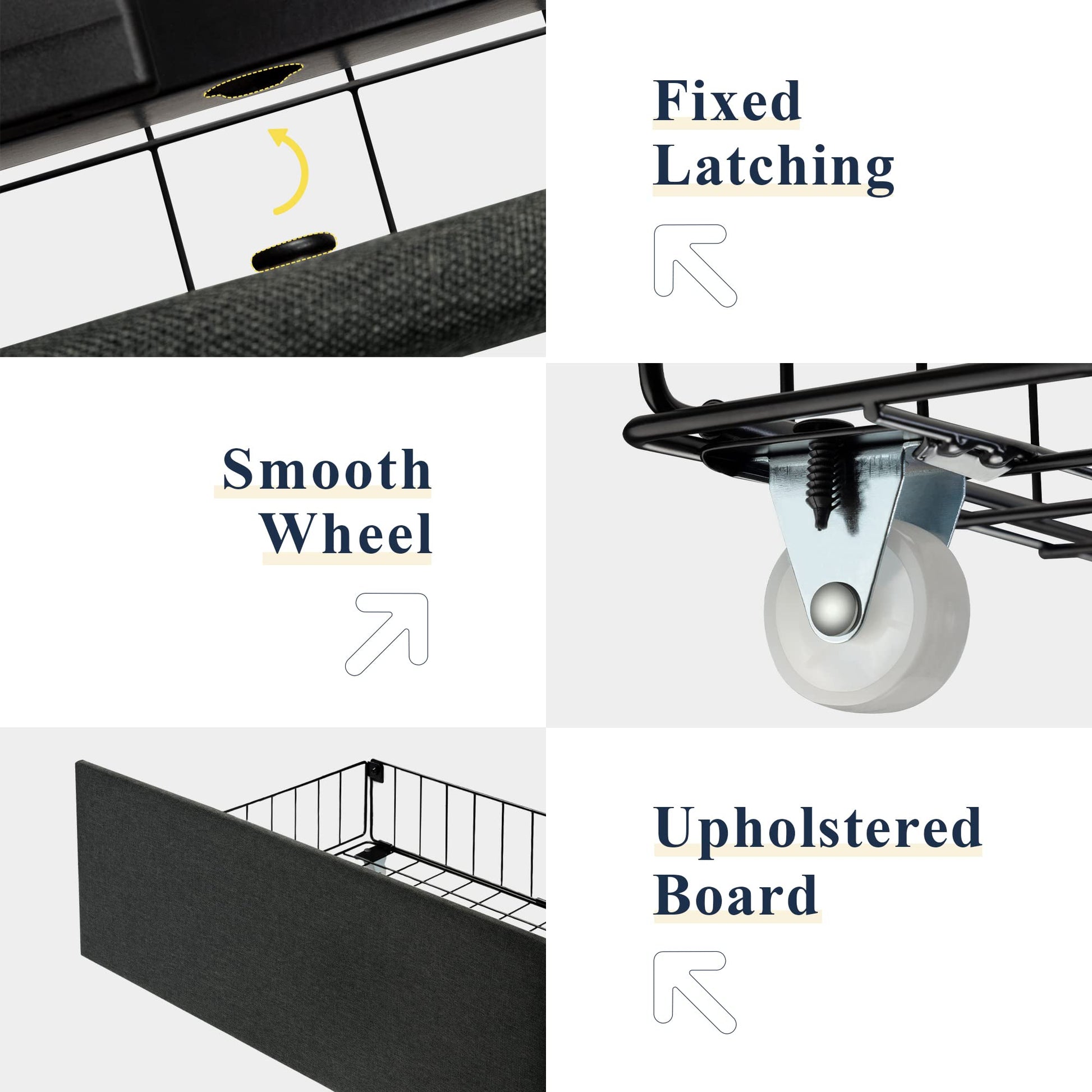 - Bed with Drawer: Four invisible under-bed storage drawers with wheels, still maintain a fashionable appearance, no more worry about crowded closets.