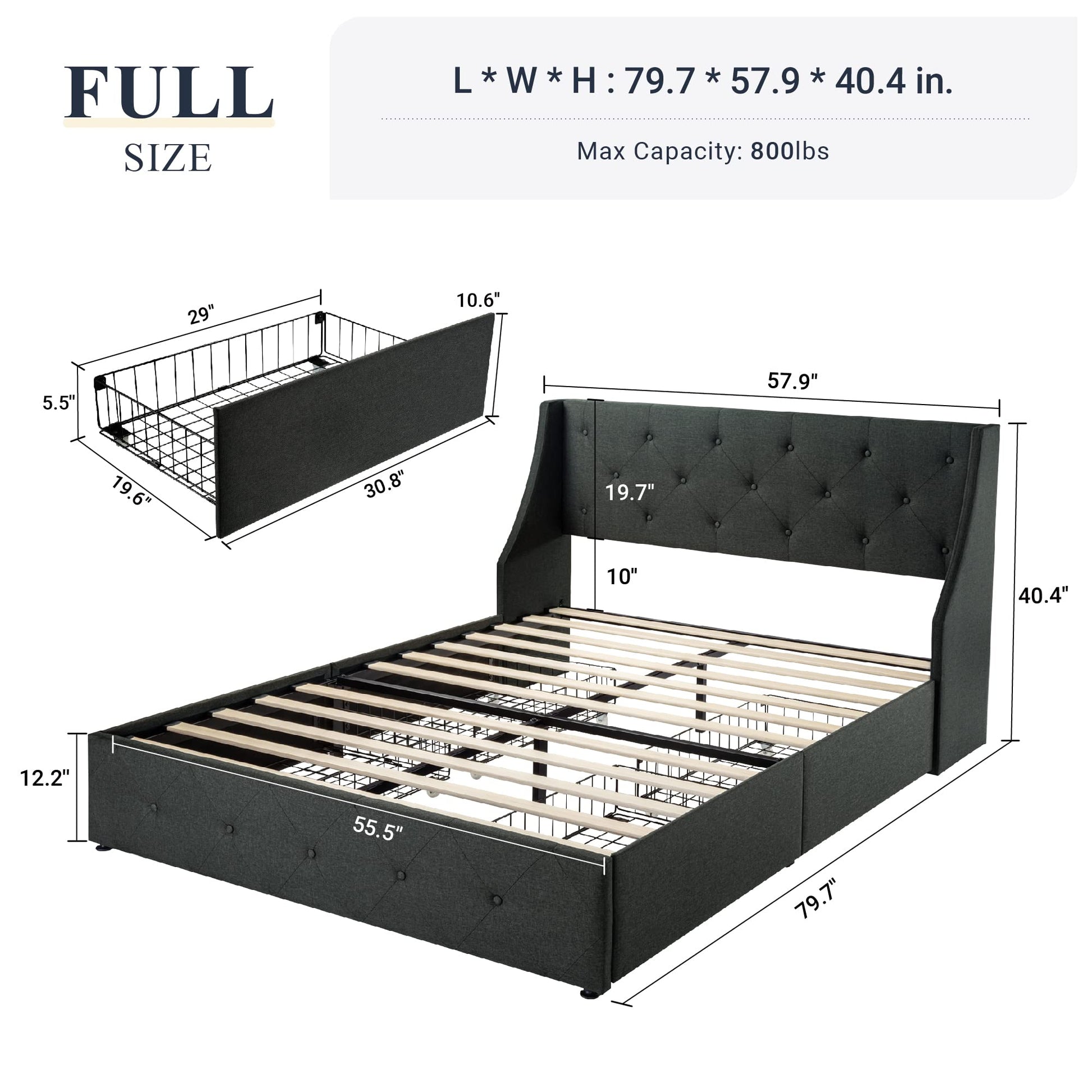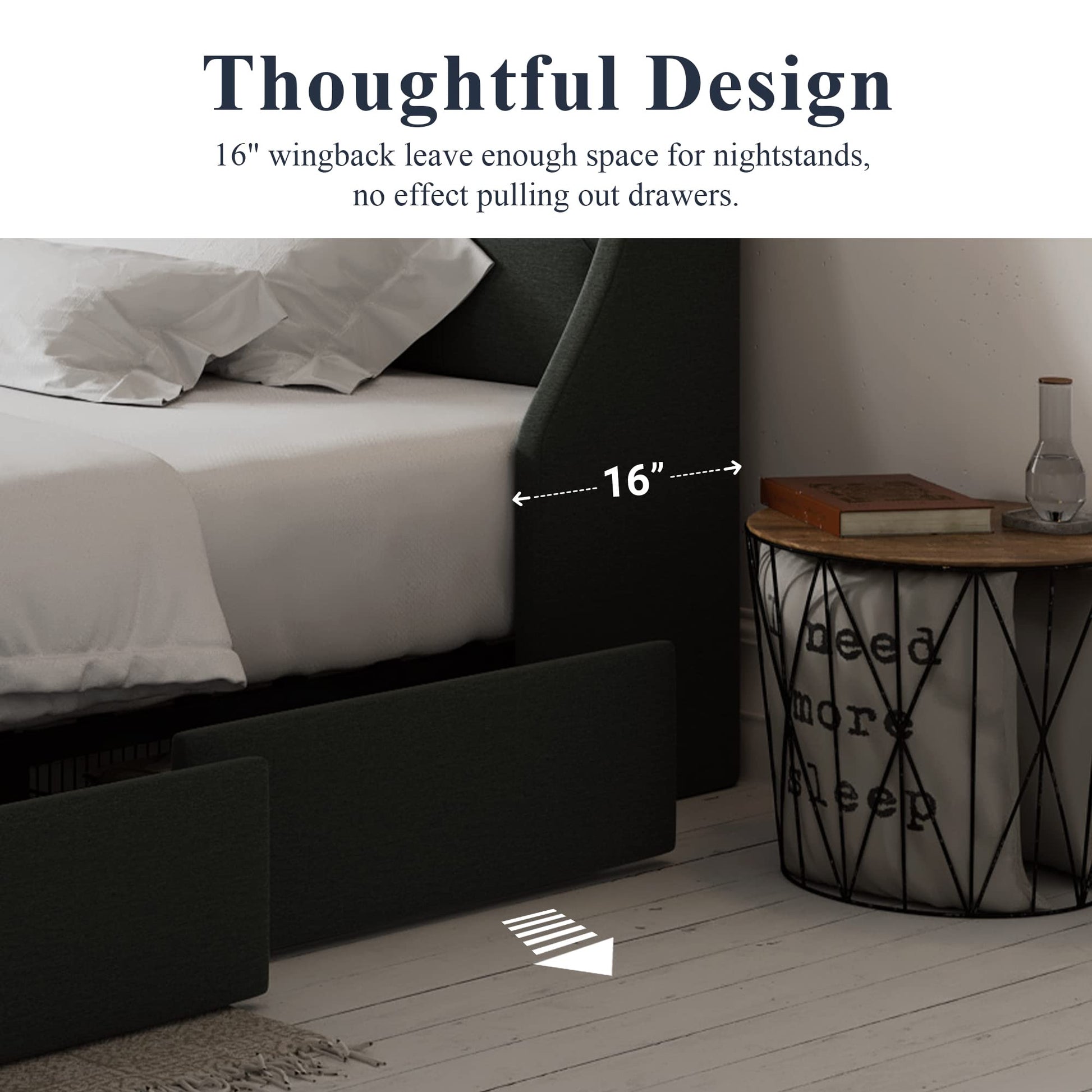 - Deluxe Wingback Bed Frame: Wide side wingback better supports your head and shoulders when leaning on the headboard, further enhances the stability, and effectively prevents the pillow from falling.