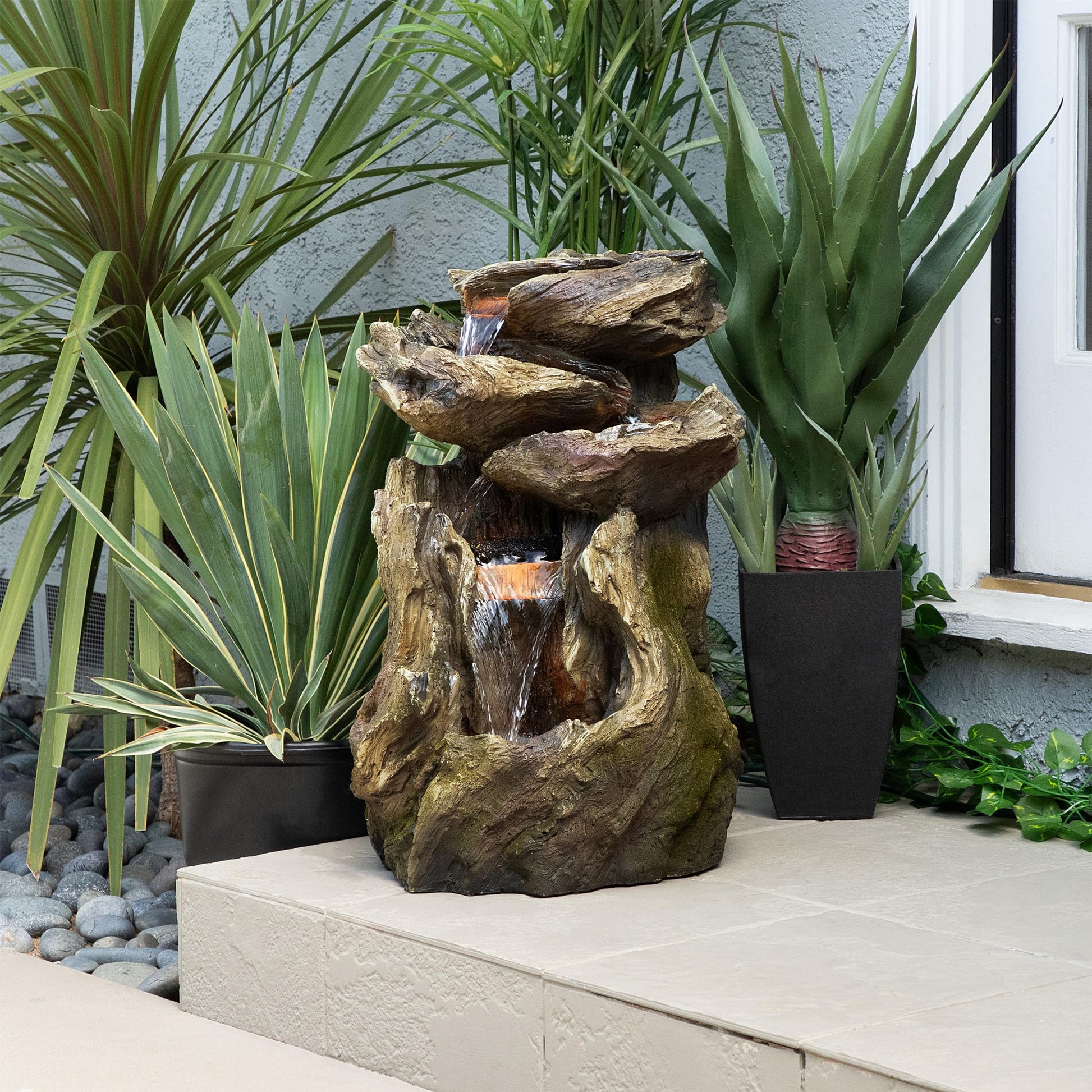 WIN1118 Indoor Floor Rainforest Log Fountain with LED Lights, 5-Tier Waterfall Garden Fountain 22", Brown