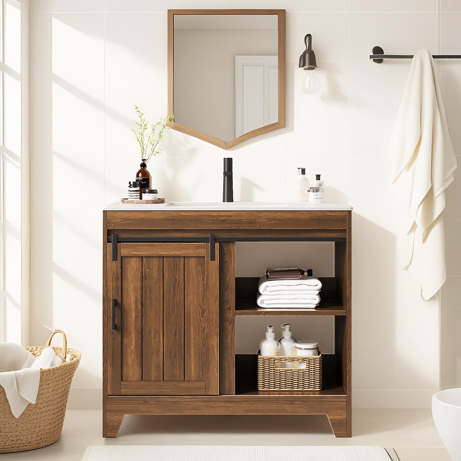 36" Farmhouse Bathroom Vanity with Ceramic Sink