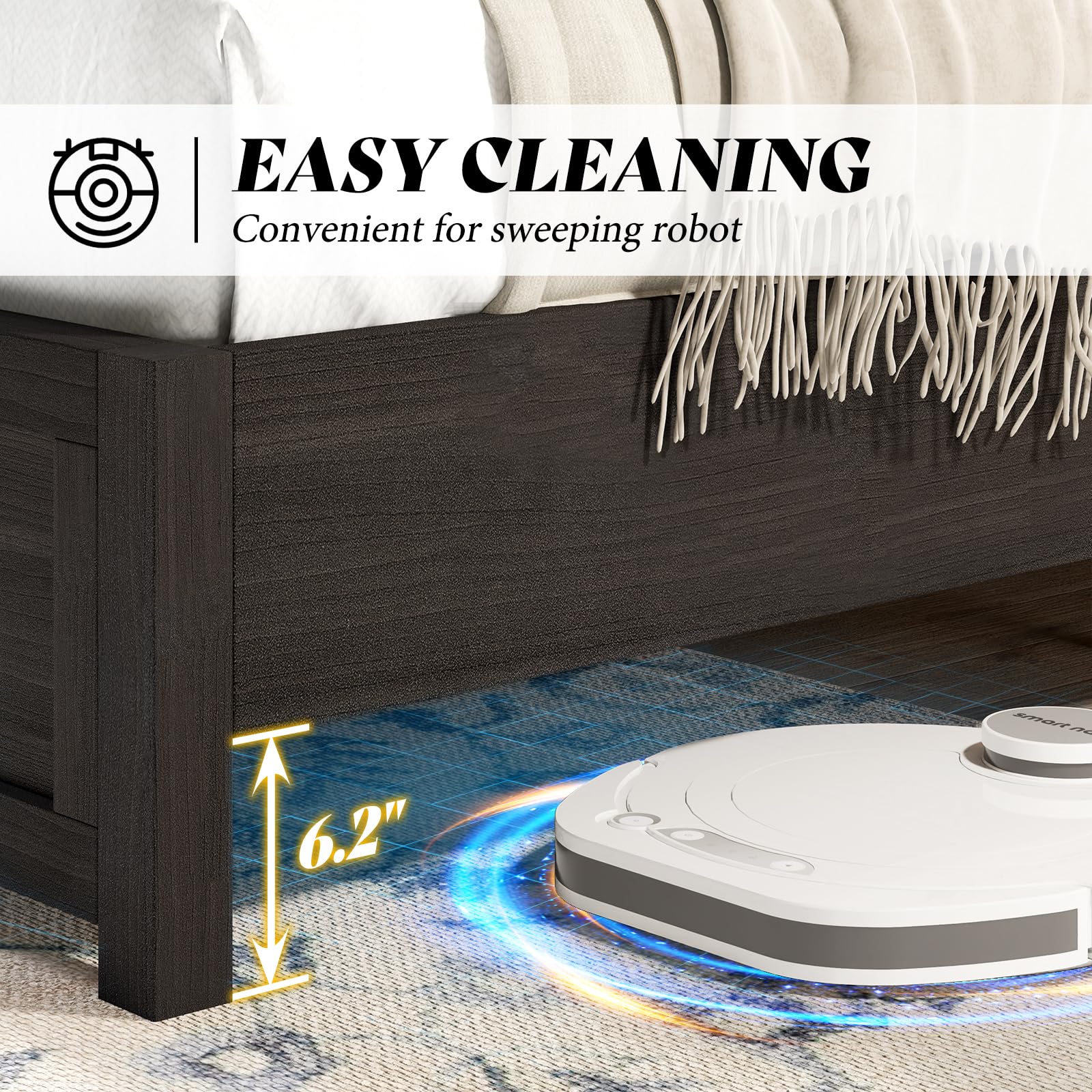 - 【Multiful Use】Ample under-bed storage space, for storing items or robot vacuum cleaner. 49" tall headboard accommodate mattresses from 10" to 16", adjustable as needed.
