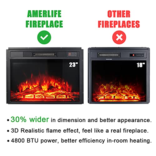 - Electric Fireplace An updated 23" plug-in electrical fireplace was included. Compared with the 18'' electric fireplace, the updated 23" electrical fireplace has a new appearance, wider dimensions, and high efficiency to make the room warm faster.