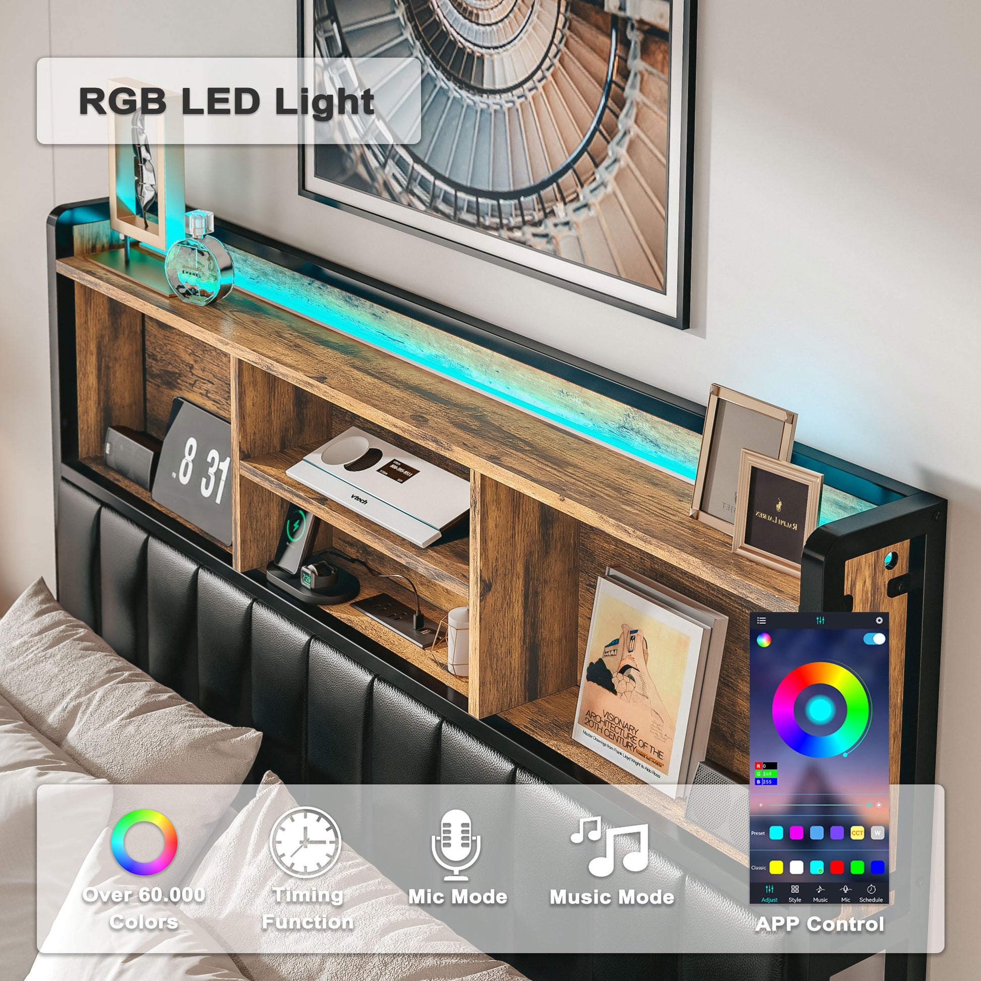 The soft upholstered headboard adds a cozy, premium touch to your space—perfect for late-night reading, scrolling, or relaxing. Built-in RGB LED lights offer multiple color settings and adjustable brightness, so you can customize your vibe whether you're winding down or setting the mood.