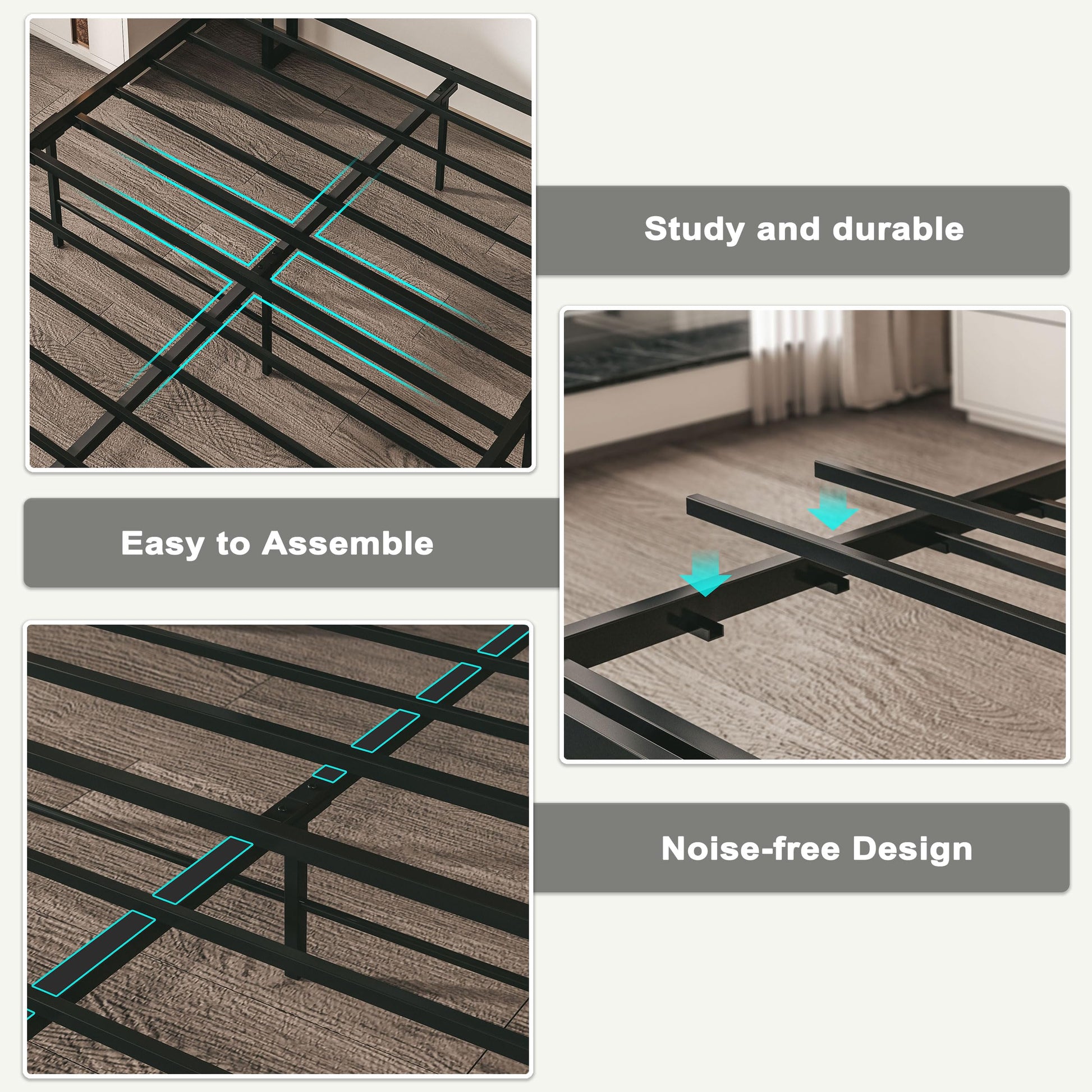 Designed with a sturdy metal frame and reinforced slats, this bed offers excellent mattress support and minimizes noise and movement for an undisturbed night’s sleep. It’s compatible with all types of mattresses, including memory foam, hybrid, and innerspring.