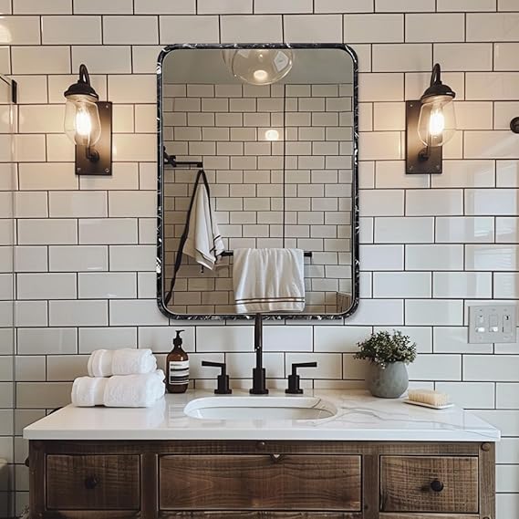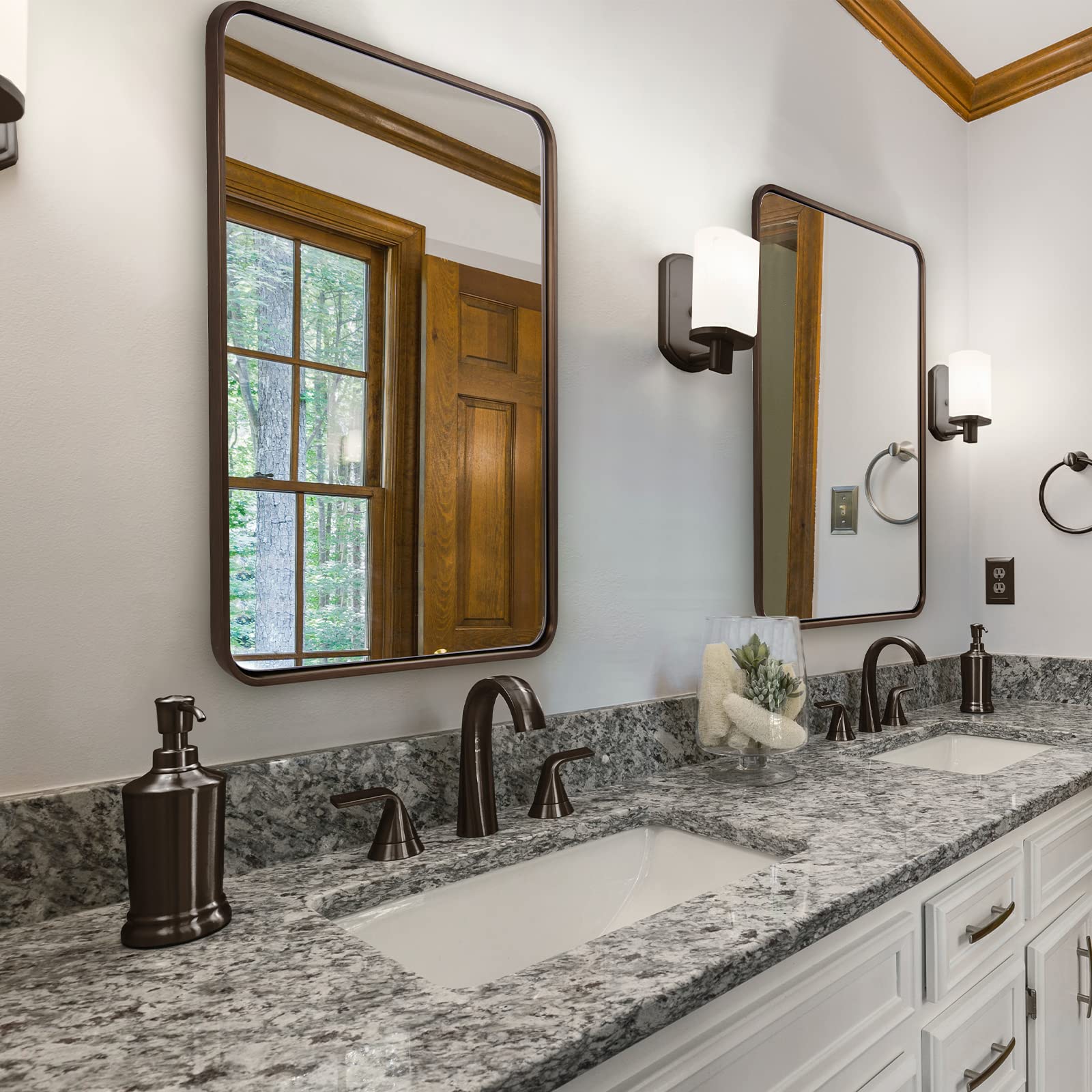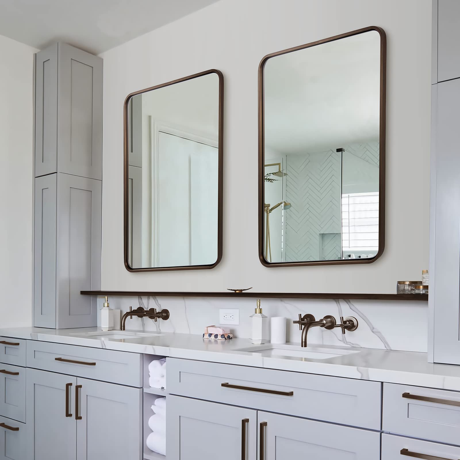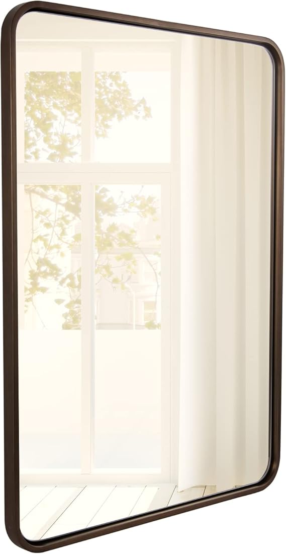 - 36x24 BRONZE WALL MIRROR IDEAL FOR HOME: This 24x36 bronze mirror is the most standard size and stylish for bathroom mirror, vanity mirror, wall mirror. The metal frame with modern brushed bronze finish could match any decoration for your space. Let this rectangle rounded corner large mirror add the light and enhance the beauty in your home instantly