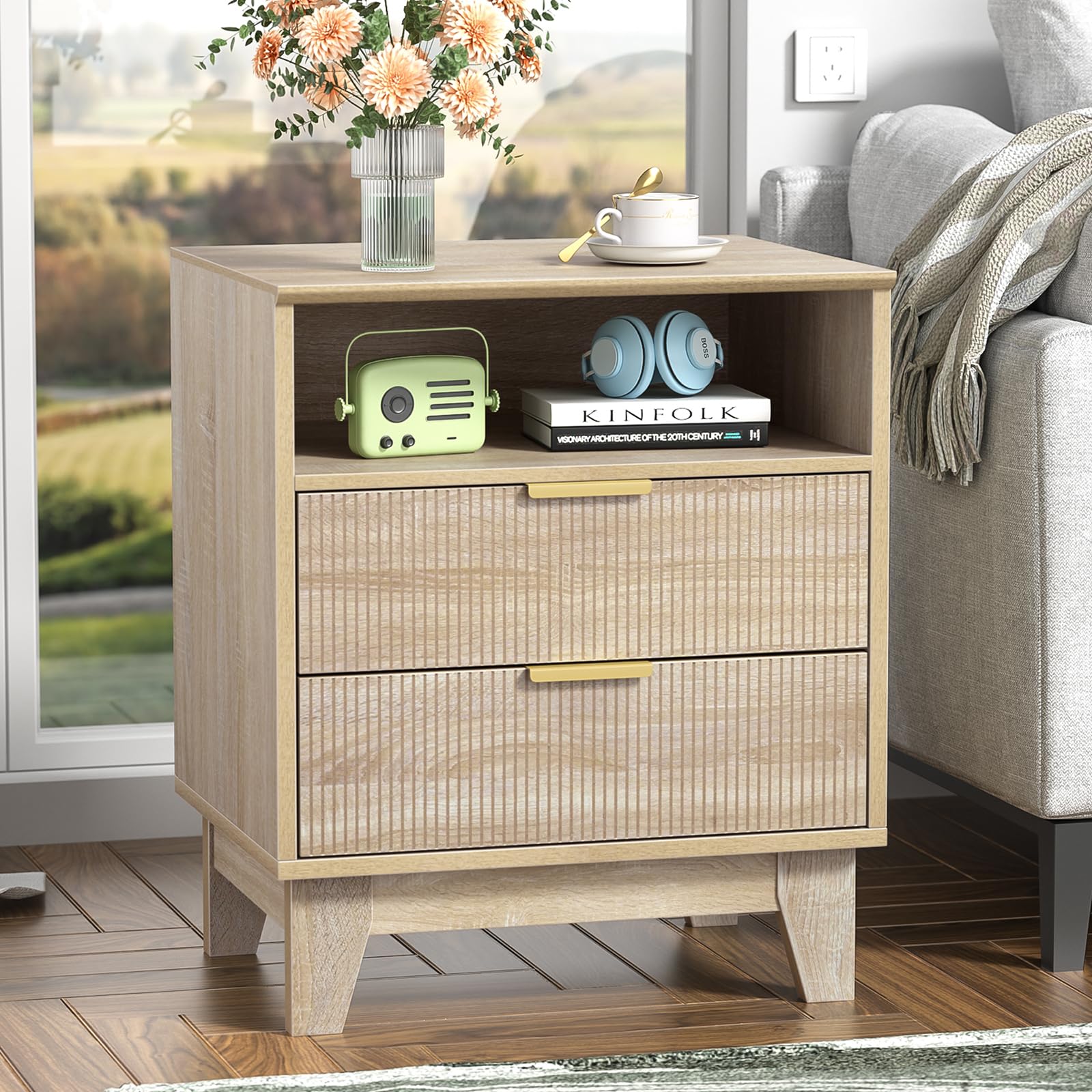 Fluted Nightstand with 2 Drawers