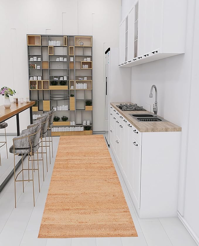 - DURABLE COMFORT: Hand Woven from stain-resistant and stylish 100% Jute fibers, this durable area rug is designed for comfort and style. This floor rug offers comfort without being too bulky for your pets, guests, and children.