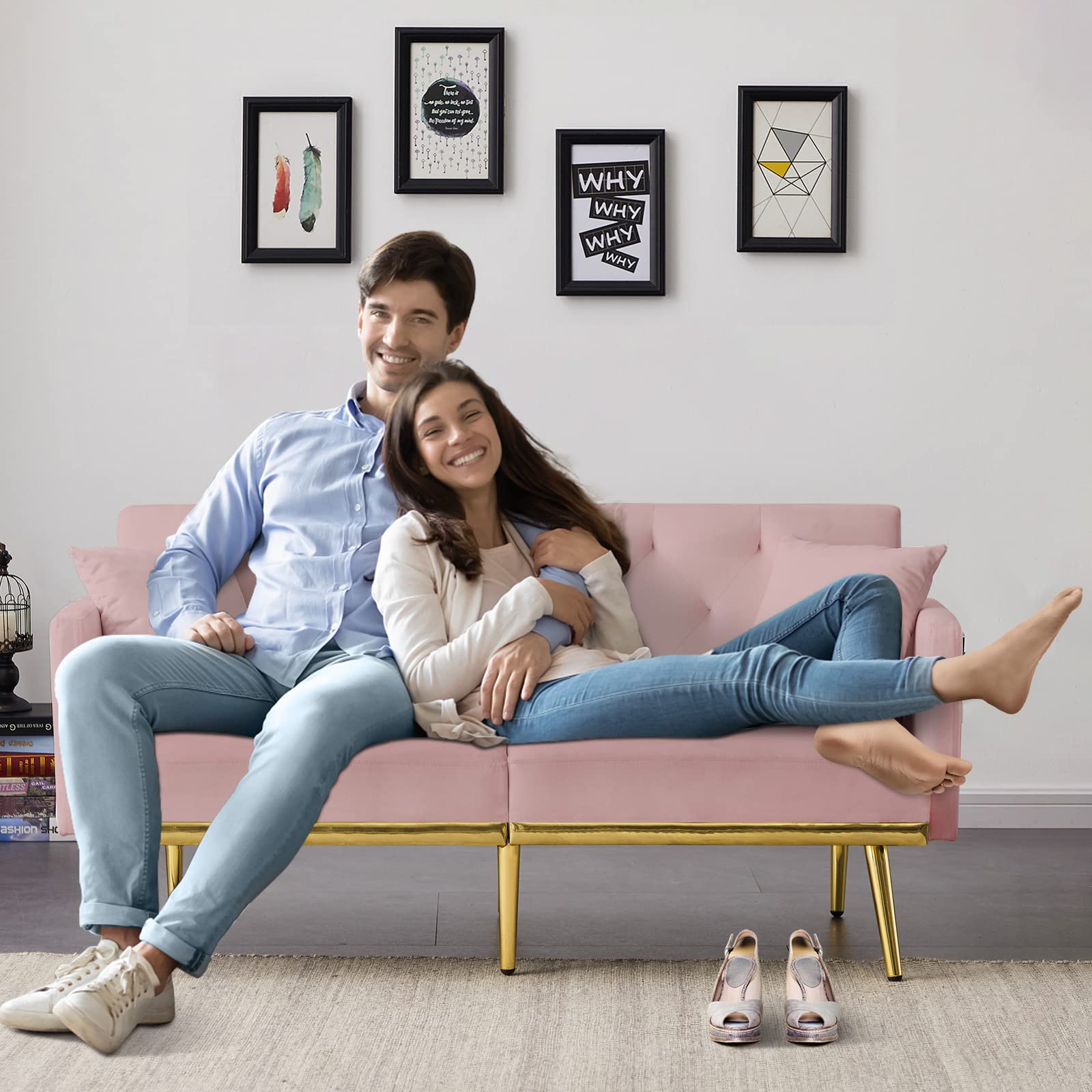 - BUILT TO LAST: This loveseat sleeper is crafted with a solid + manufactured wood frame and 6 gold metal legs. It is very stable, durable, and can easily hold up to 400 lbs. In addition, the 9" metal legs make it easy for the robot vacuum to pass perfectly without worrying about cleaning problems