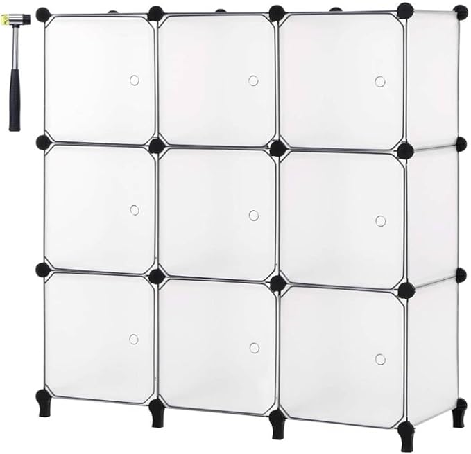 - With 9 cube storage units, you can put various items to meet all of your daily needs. For example, shoes, books, toys, artworks, decorations, handbags, cosmetics, etc. Every cube is mesured 13.4” x 13.4” x 14.6” and its inside is measured 11.8” x 11.8” x 11.8” and will support up to 15lbs, which is a perfect shelf to display your daily essentials