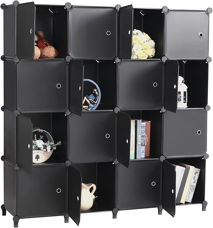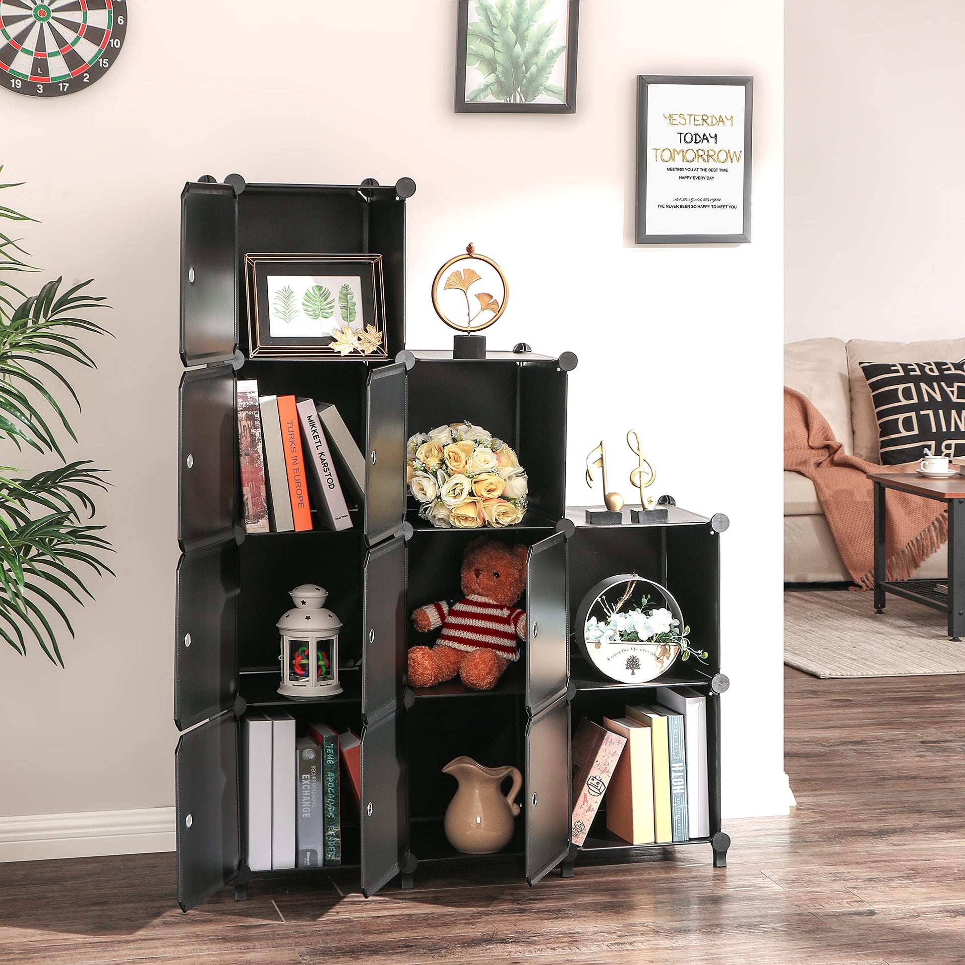 Cube Storage Organizer with Doors 9-Cube Modular DIY Book Shelf with Doors, Cube Storage Shelf, Plastic Storage Cubbies Cabinet for Living Room Bedroom Office 36.8"x12.4"x49.8" Black ULCS09BM