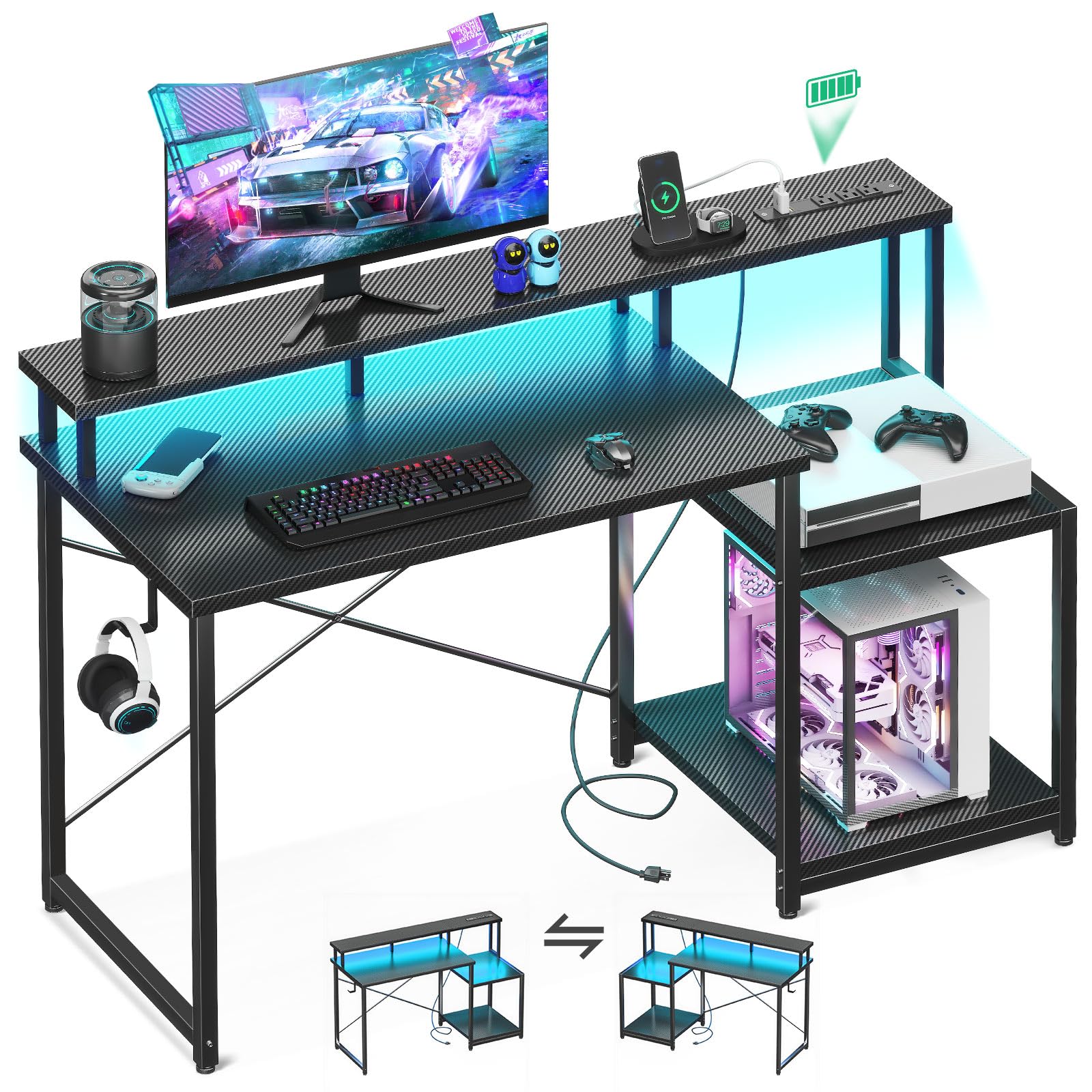- Desk with LED Lights This computer desk is equipped with a LED light strip under its monitor shelf, which can provide 10 static colors and 10 dynamic modes for your selection. By using different colors and brightness, you can create different light effects and ambiance to add a personalized style to your work or gaming area.