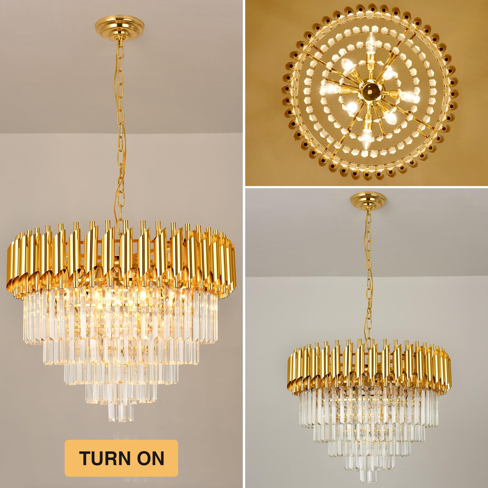 - Crafted with precision-cut crystals and a durable, anti-rust gold aluminum frame, this round gold chandelier is built to last and easy to maintain.