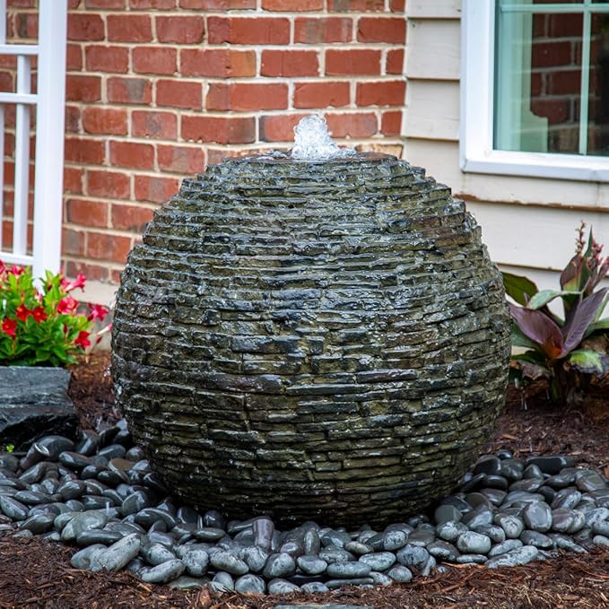 78290 Medium Stacked Sphere Water Fountain, Landscape Kit, Slate Gray