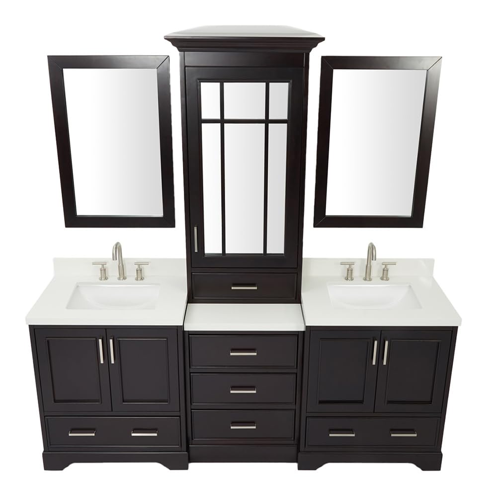 85" Espresso Double Vanity with 1.5" Edge Pure White Quartz Countertop & Backsplash