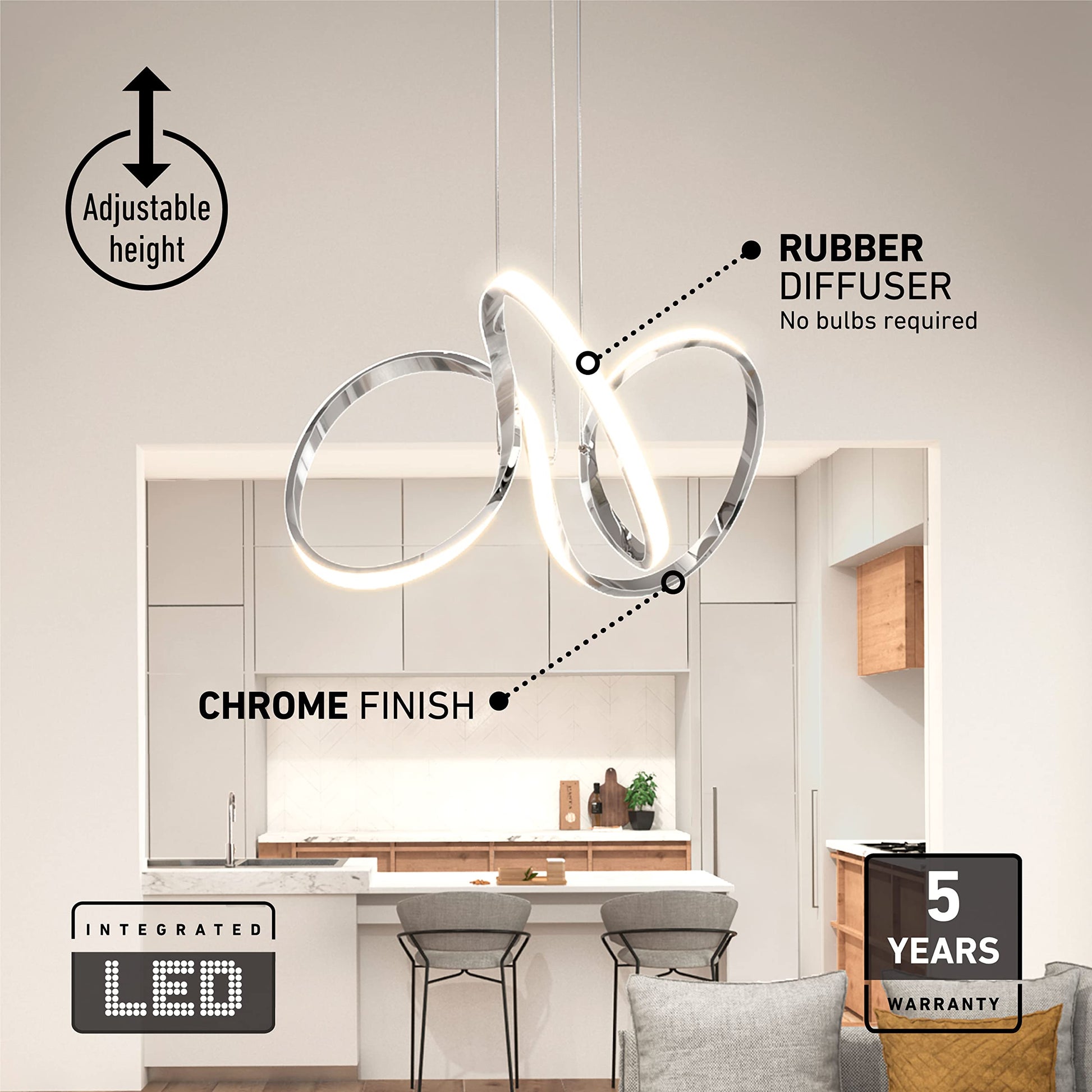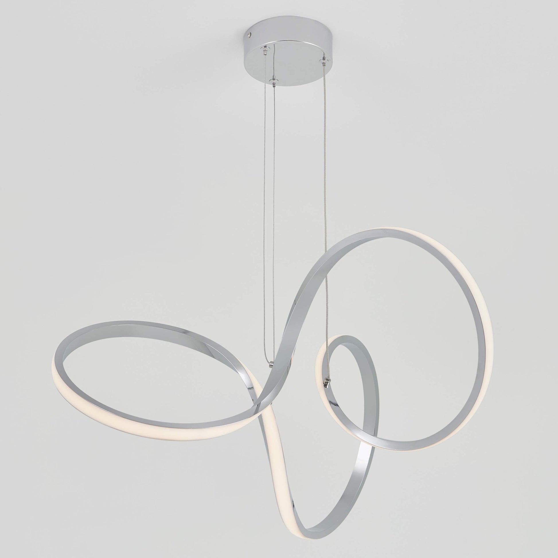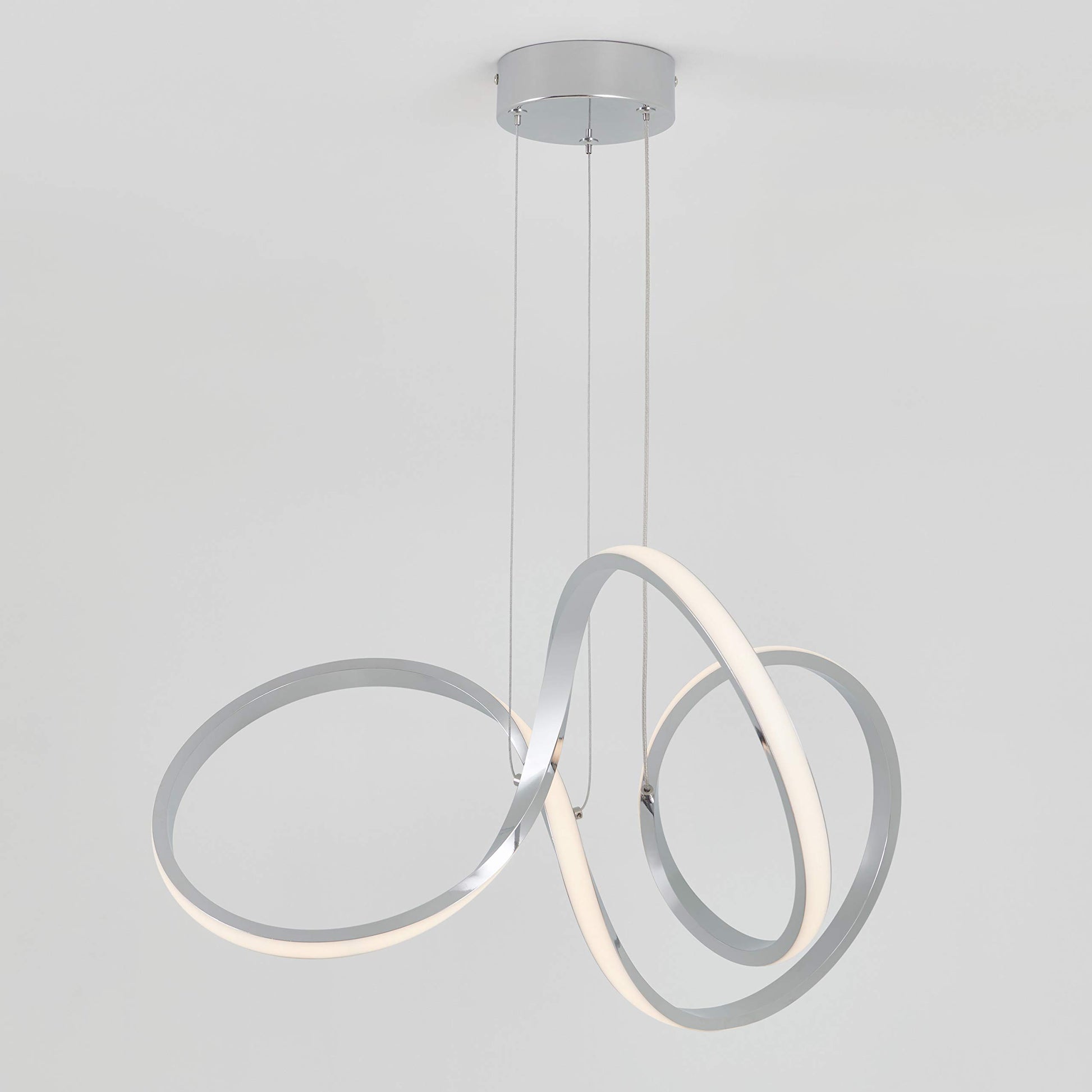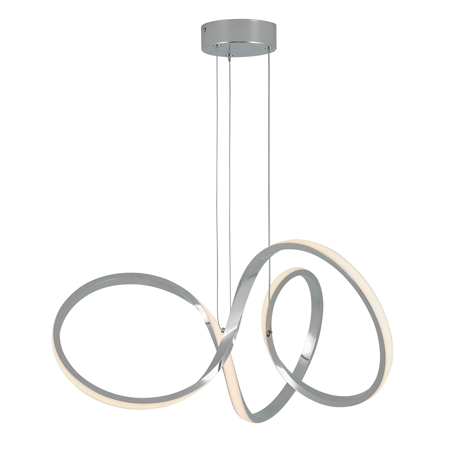 - THIS CONTEMPORARY PENDANT LIGHT FIXTURE adds an artistic ambiance to any room with its aesthetically pleasing swirls and pristine chrome finish.