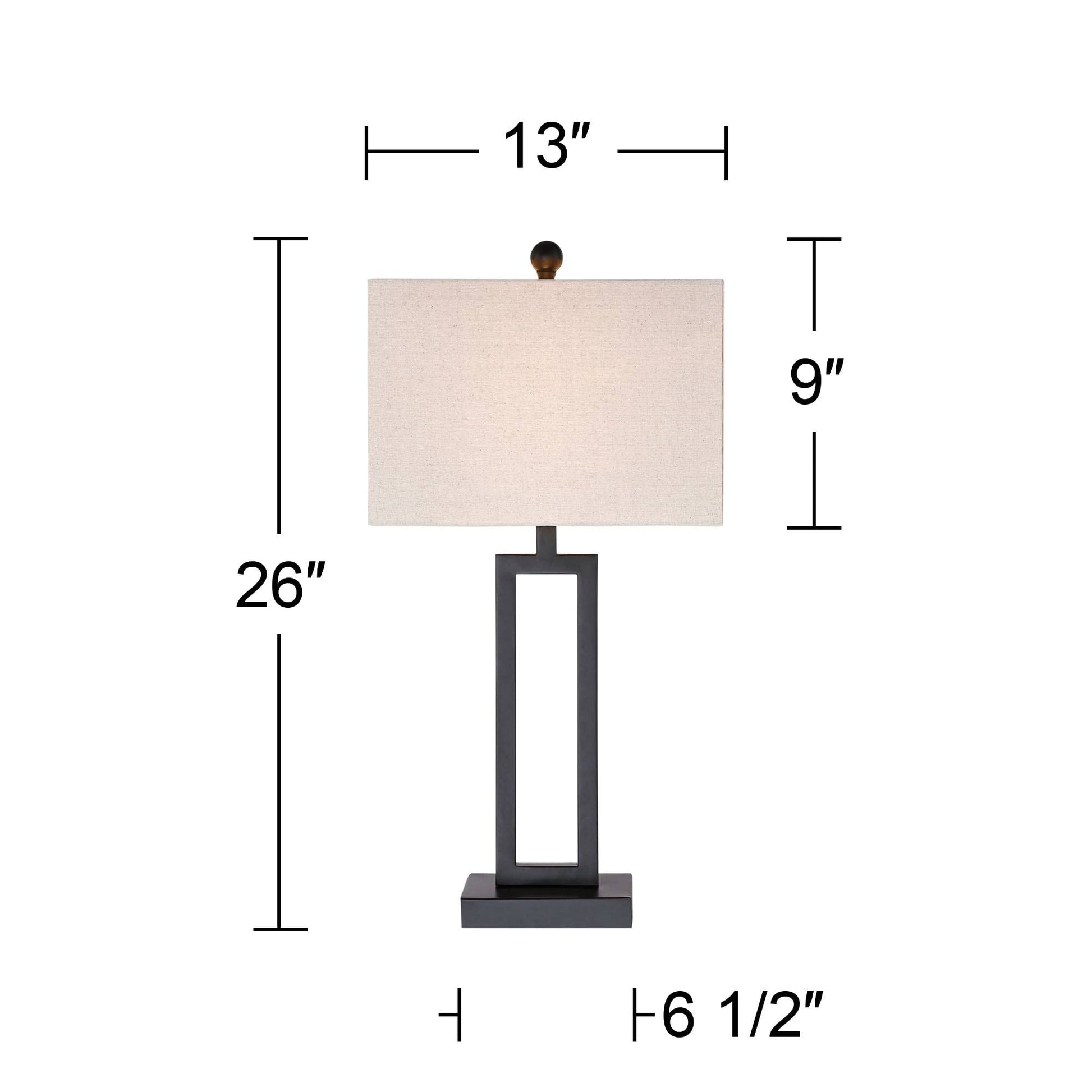 Aston 26" Modern Rectangle Table Lamp - Black Metal with Off-White Shade