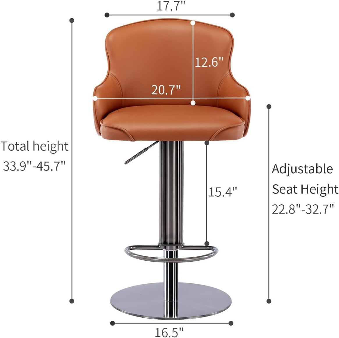 - The Function of the bar stools' 360-degree swivel accentuates the contoured back for optimum dining comfort. Bar chair seat adjustable in height is 22.8”-32.7”,suitable for home kitchen, restaurant, living room,study or pub.