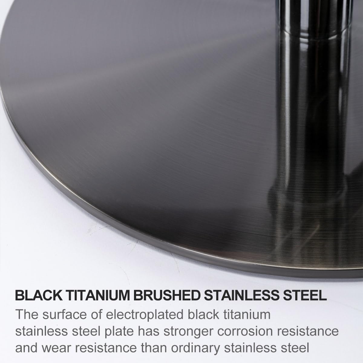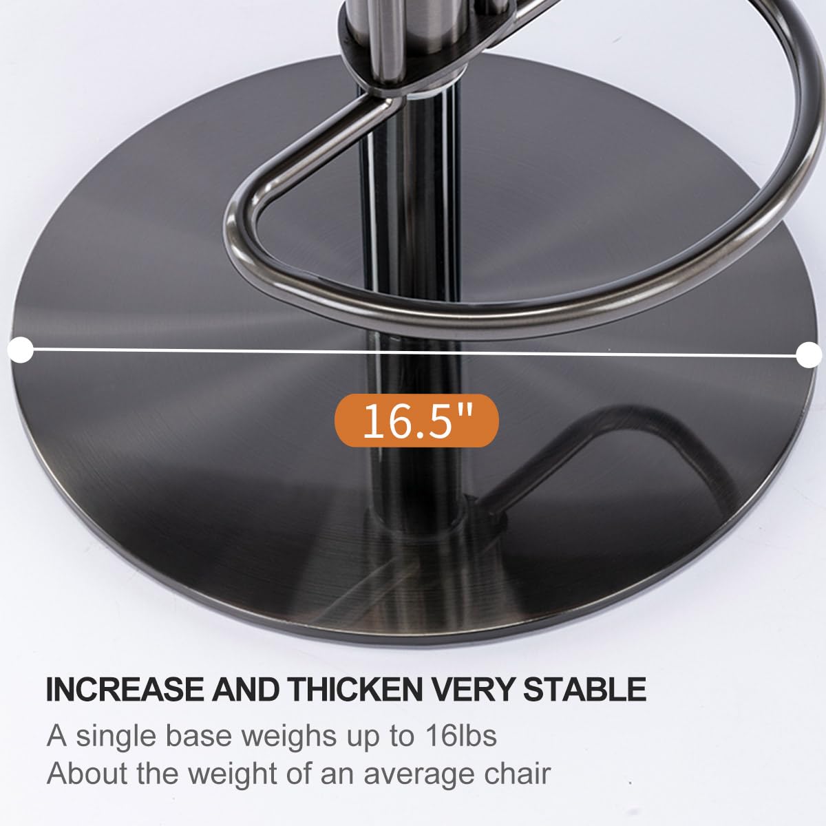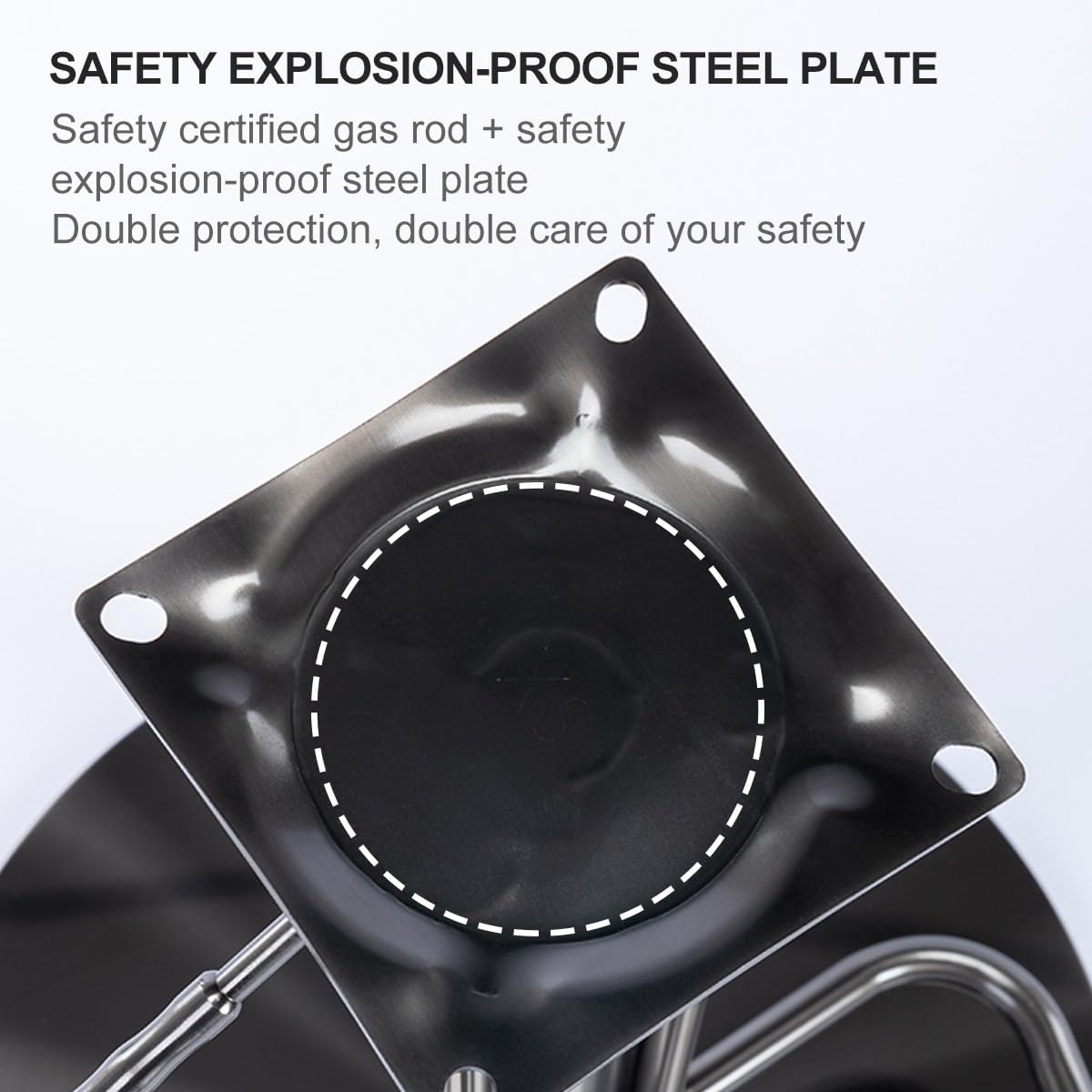 - The High-Quality Bar Stools 16.5” in diameter at the bottom, have a black titanium stainless steel base and gas lift cover linked footrest. Increase the weight of the base, stable and firm. BIMFA Certification Gaslife. Safe gaslift lever through exquisite craftsmanship and strict inspection is of great reliability.