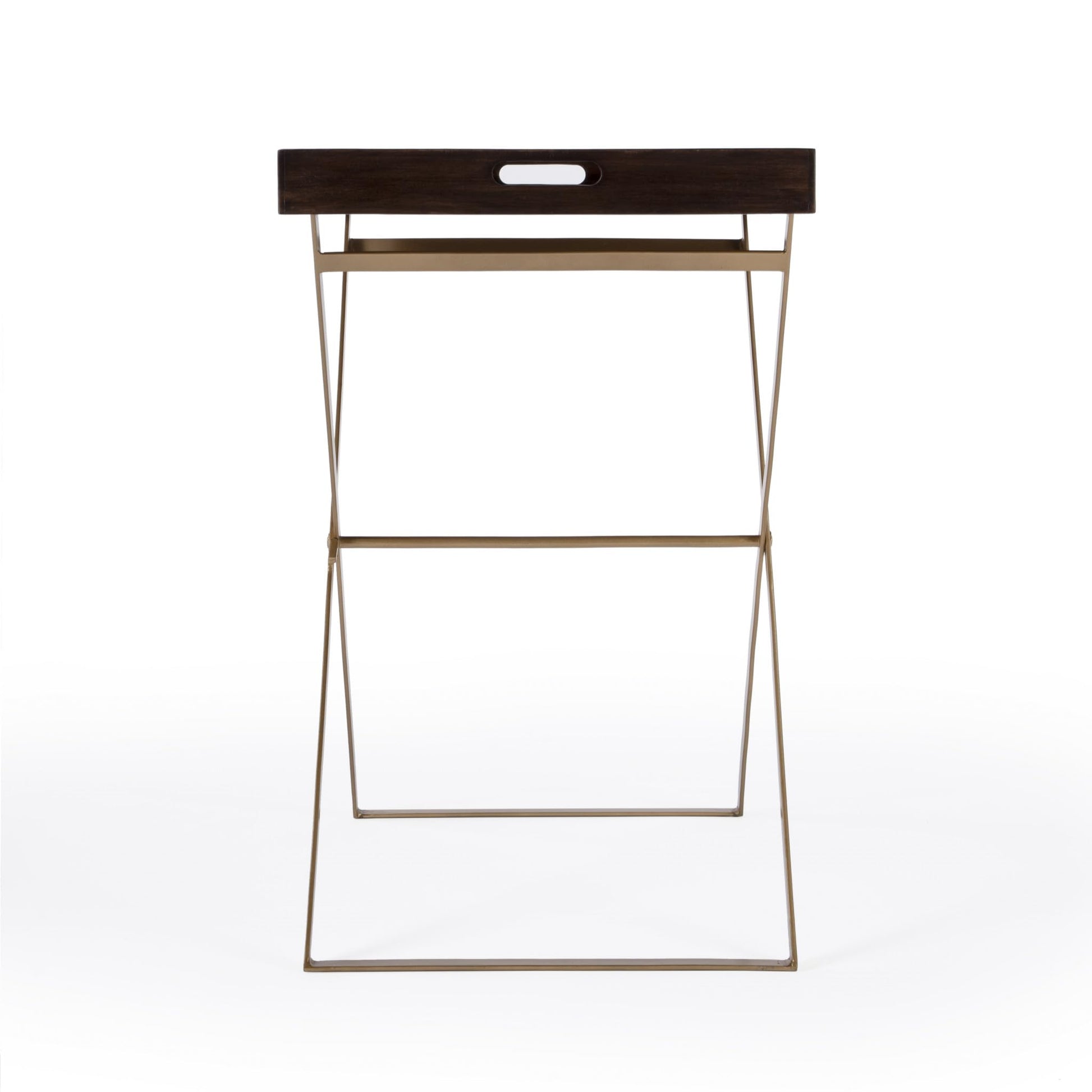 AurumWood 27" Gold-Legged Walnut Tray End Table
