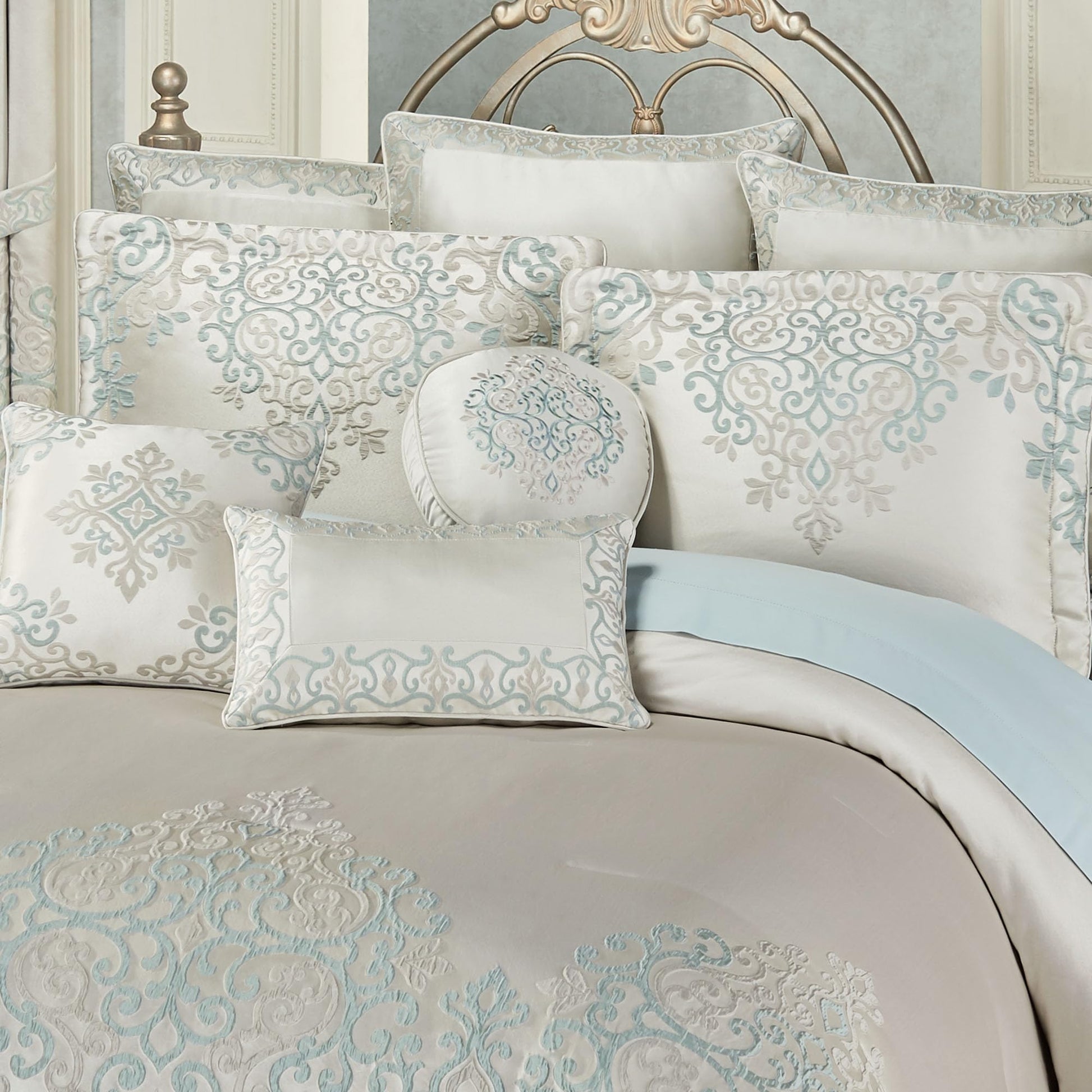 Transform your bedroom into a luxurious retreat with the Avalon 11-piece comforter set. This sophisticated bedding ensemble features an elegant jacquard woven scroll pattern in a refined oyster spa silver gray colorway, bringing timeless style and premium comfort to your sleep sanctuary.