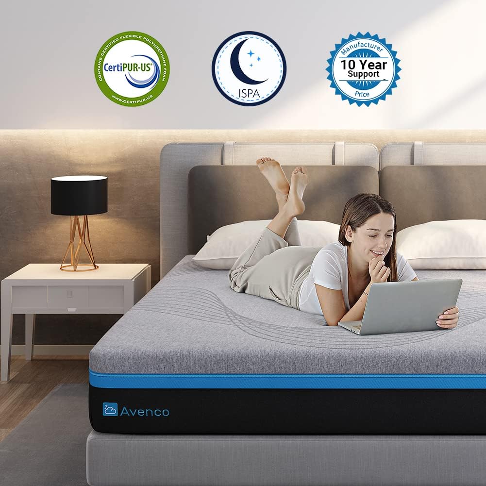 - ENJOY A SOUND SLEEP on OUR PRESSURE RELIEF MATTRESSES: Using CertiPUR-US foam, you are safe with an Avenco Queen-size memory foam mattress. This Queen mattress is equipped plush mattress cover to provide you with a clean and comfortable surface. Finished with high quality, our premium Queen memory foam mattress can relieve you from the tiredness of the whole day’s work and let you sleep well.
