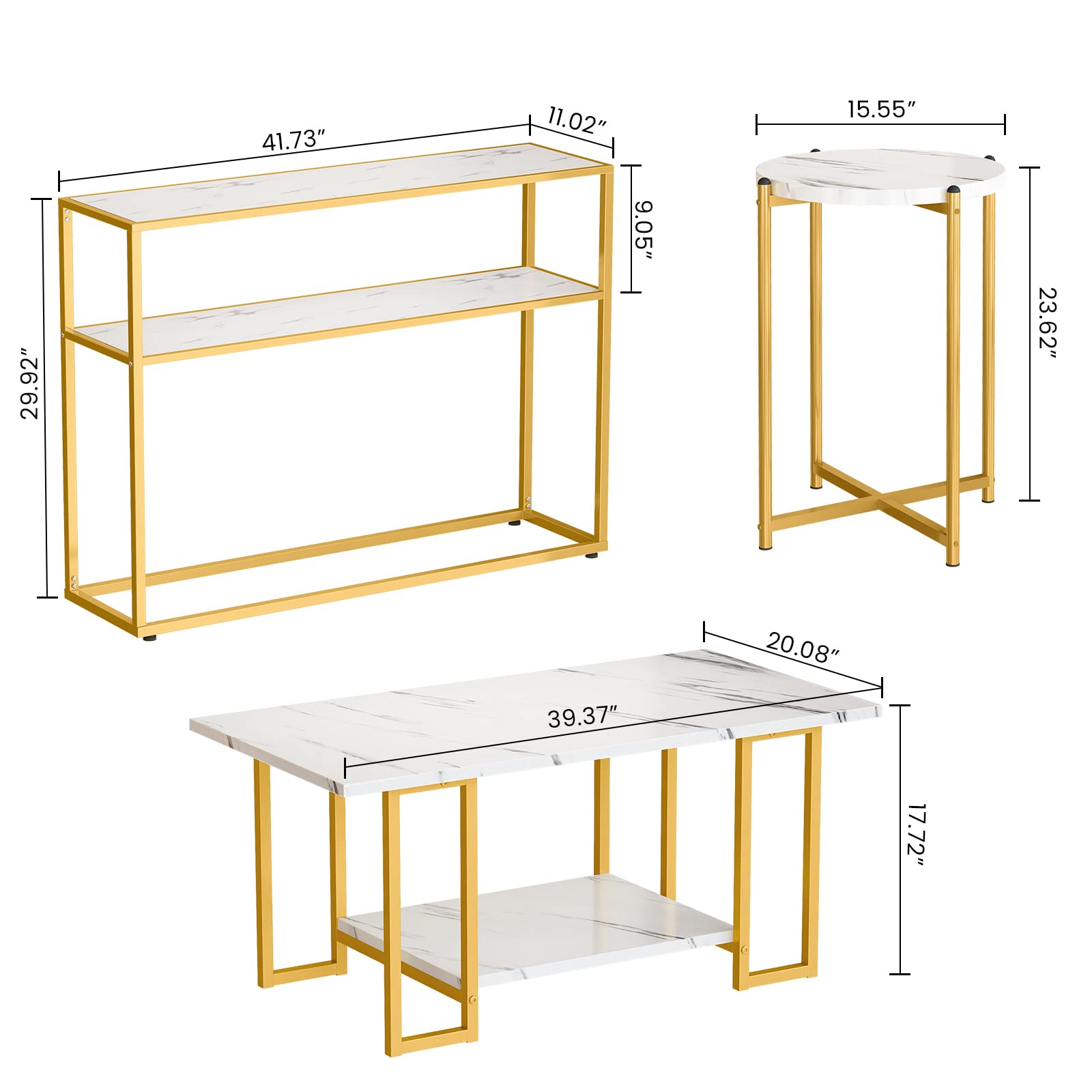 - This living room table set of 3 includes coffee table, end side table and console table. End Table Size: 15.55" L x 15.55" W x 23.62" H, Coffee Table Size: 39.37" L x 20.08" W x 17.72" H, Console Table Size: 41.73" L x 11.02" W x 29.92" H.