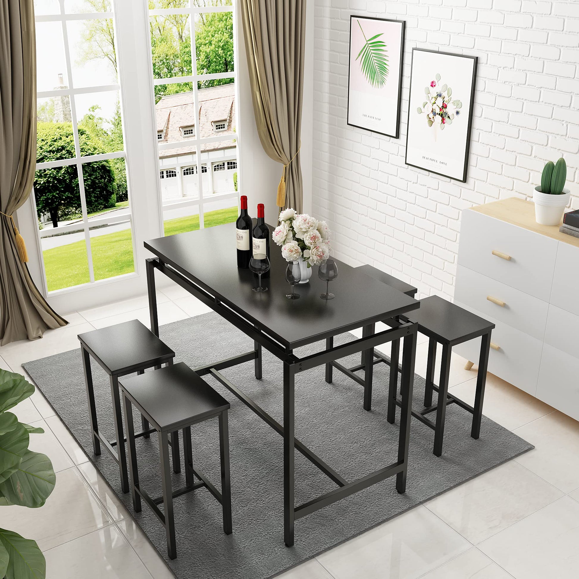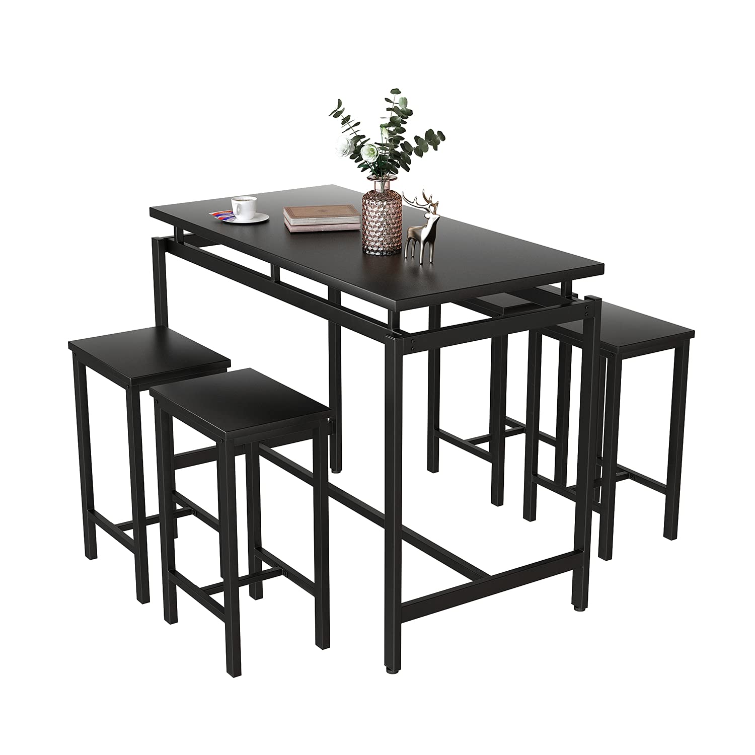 - Our 5 pieces dining table set includes 1 counter height table and 4 stools. This bar styled dining table set can be used as an indoor bar table set, compact dining table set, pub table set, breakfast nook table set, dining room table set.