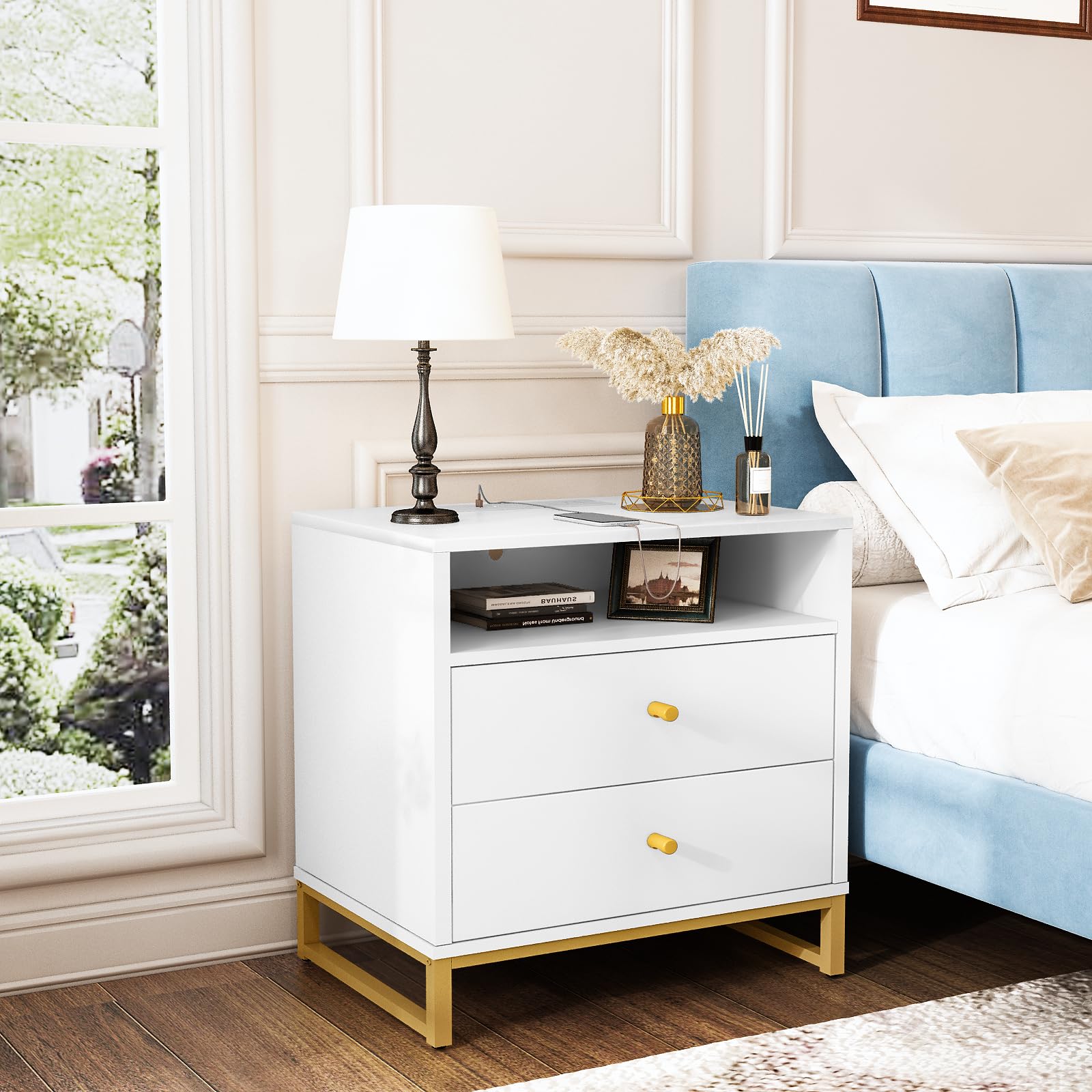 - - This Night Stand is composed of a white cabinet, gold drawer handles and legs. It is simple and attractive, suitable for any style. Not only can be used as a normal nightstand, bedroom cabinet, but also perfect for sofa side table and small drawer chest., which create a clean, serene and elegant atmosphere for your home.
