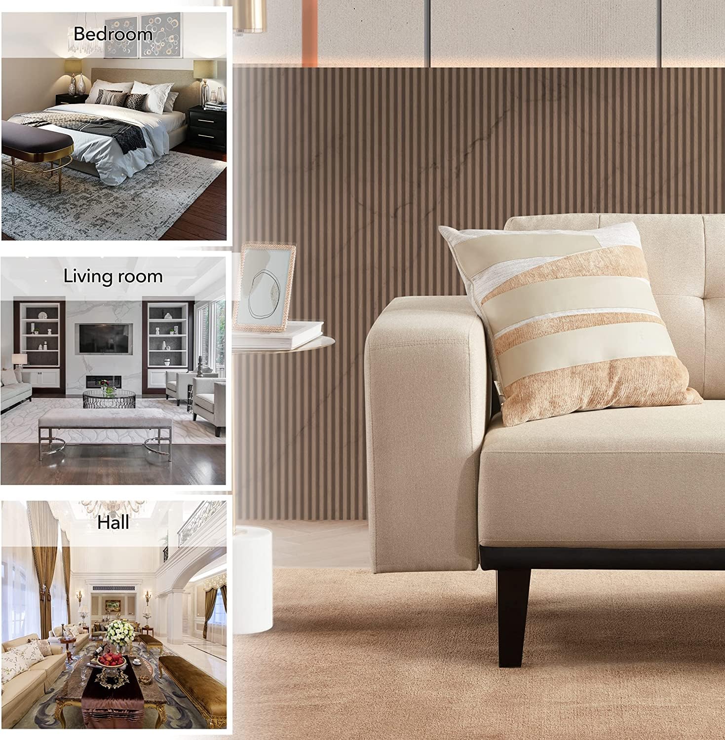 - STYLISH MODERN DESIGN: Are you still troubled by not being able to find right furniture that suits the design style you want? Please look here! Our living room couch has contemporary design. It can provide a high-end vibe to living. This delightful modern couch includes a lounge seat with cushions, track armrests, tapered legs, and 2 mid-century style sectional wide cushions. The mid century sofa is a suitable choice for office, bedroom, apartment and living room.