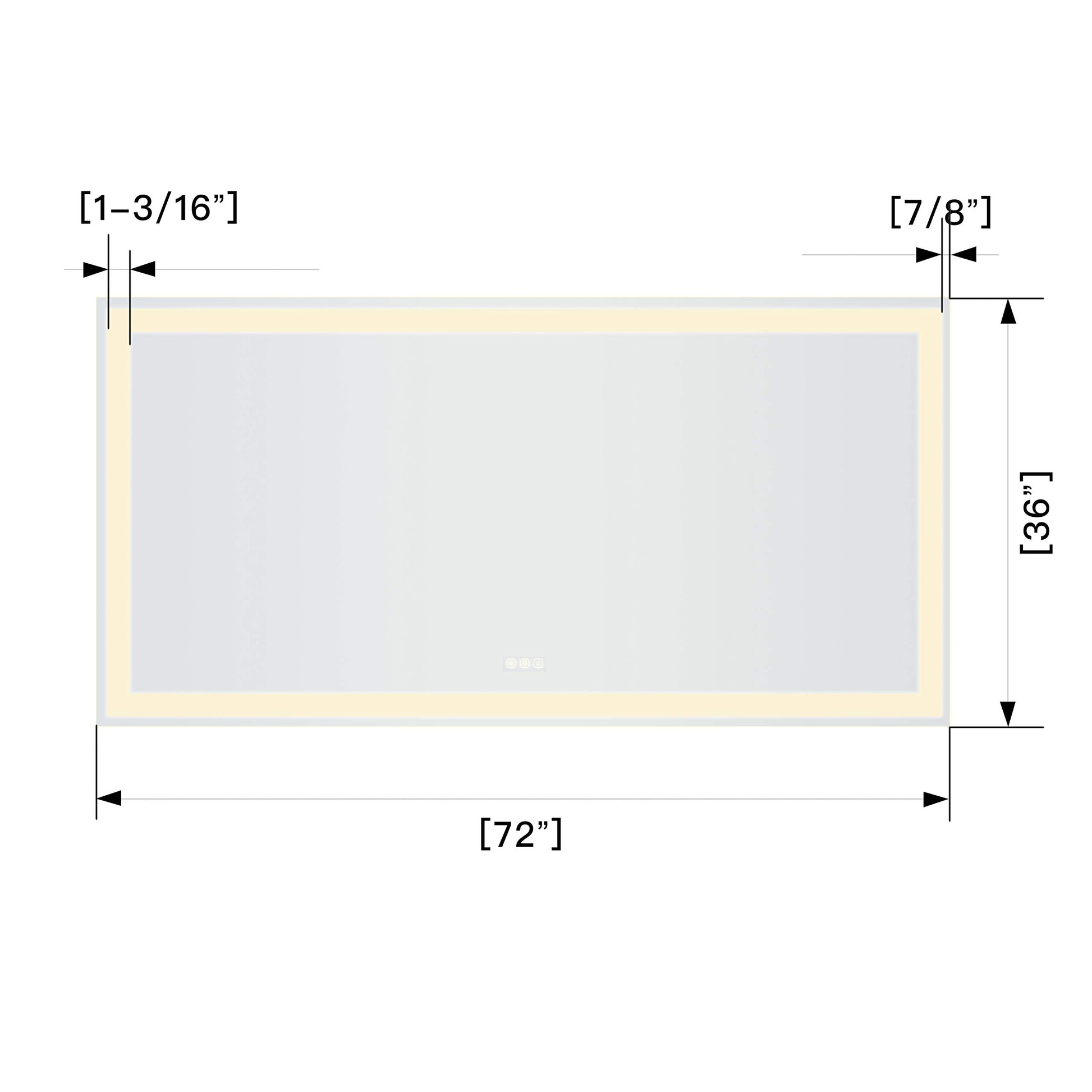 B&C 72"x36" Lighted Bathroom Mirror Wall Mounted|High Lumen LED Lights with CRI>95| Plug/Wall Switch Ready|Vertical or Horizontal|Defogger and Dimmer with Memory|Touch Switch|Non-Copper Silver Backed