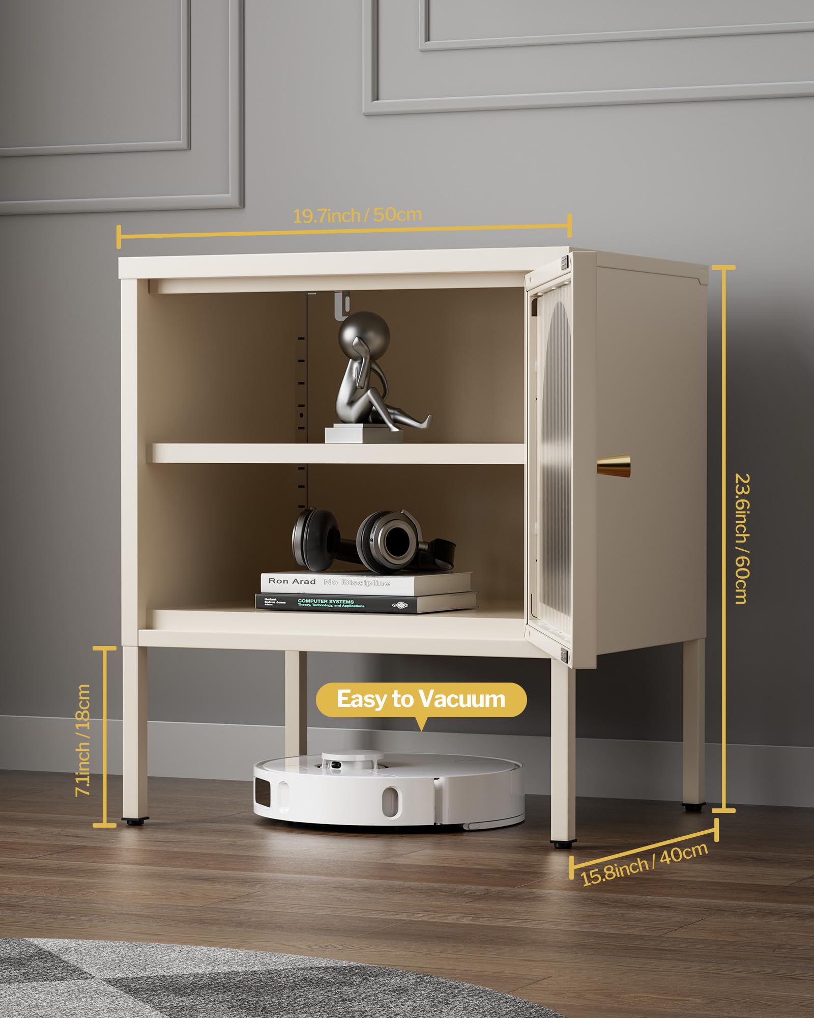- Spacious Storage Solution - Benefit from a spacious top shelf and adjustable storage shelf. With dimensions of 19.7 x 15.8 x 23.6 inches (50 x 40 x 60 cm), it offers plenty of room for your bedside essentials. Easy to assemble with all parts, screws, tools, and instructions included. Enhance your bedroom with both functionality and elegance!