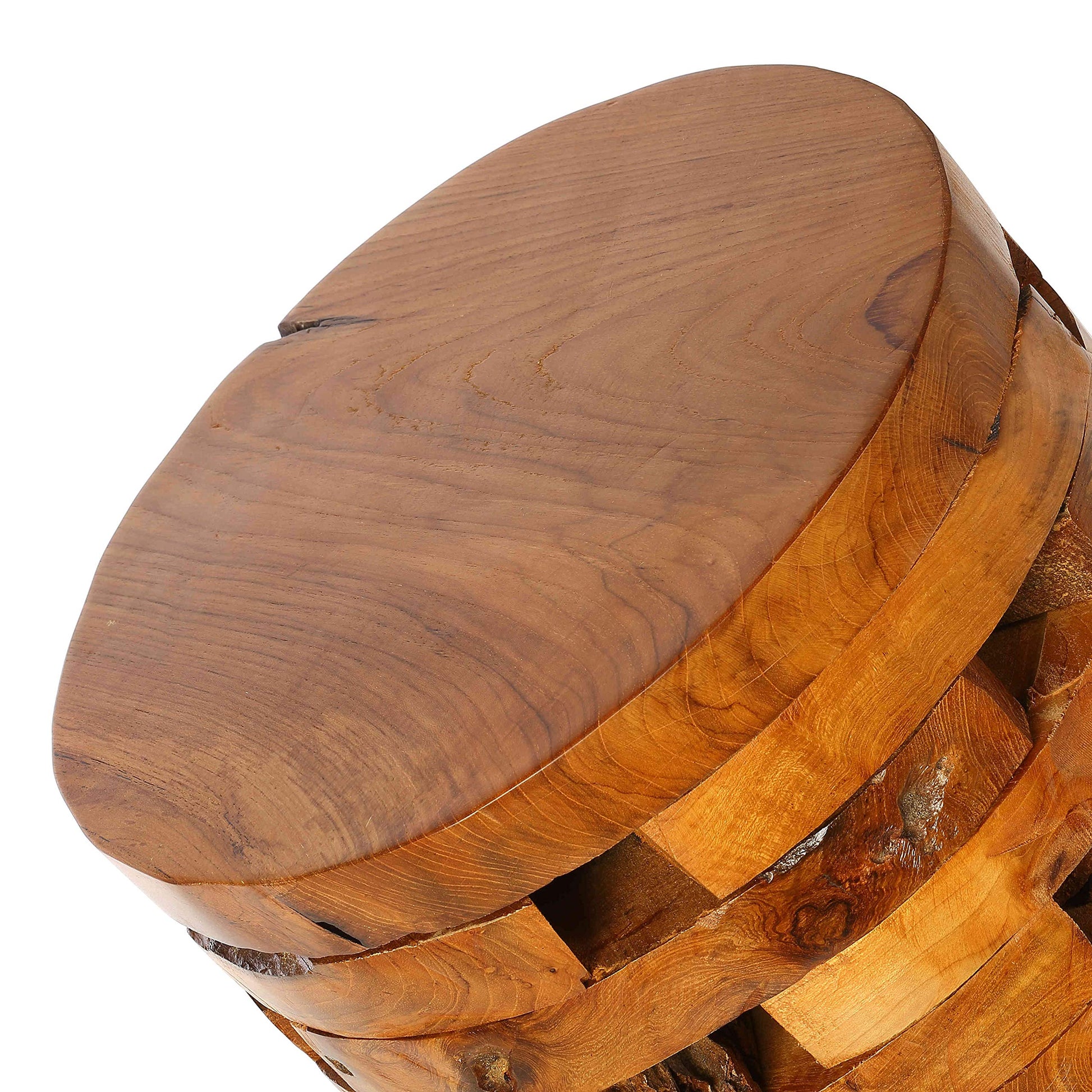 Stonehenge Artisan Accent Table in Solid Teak Wood, Natural