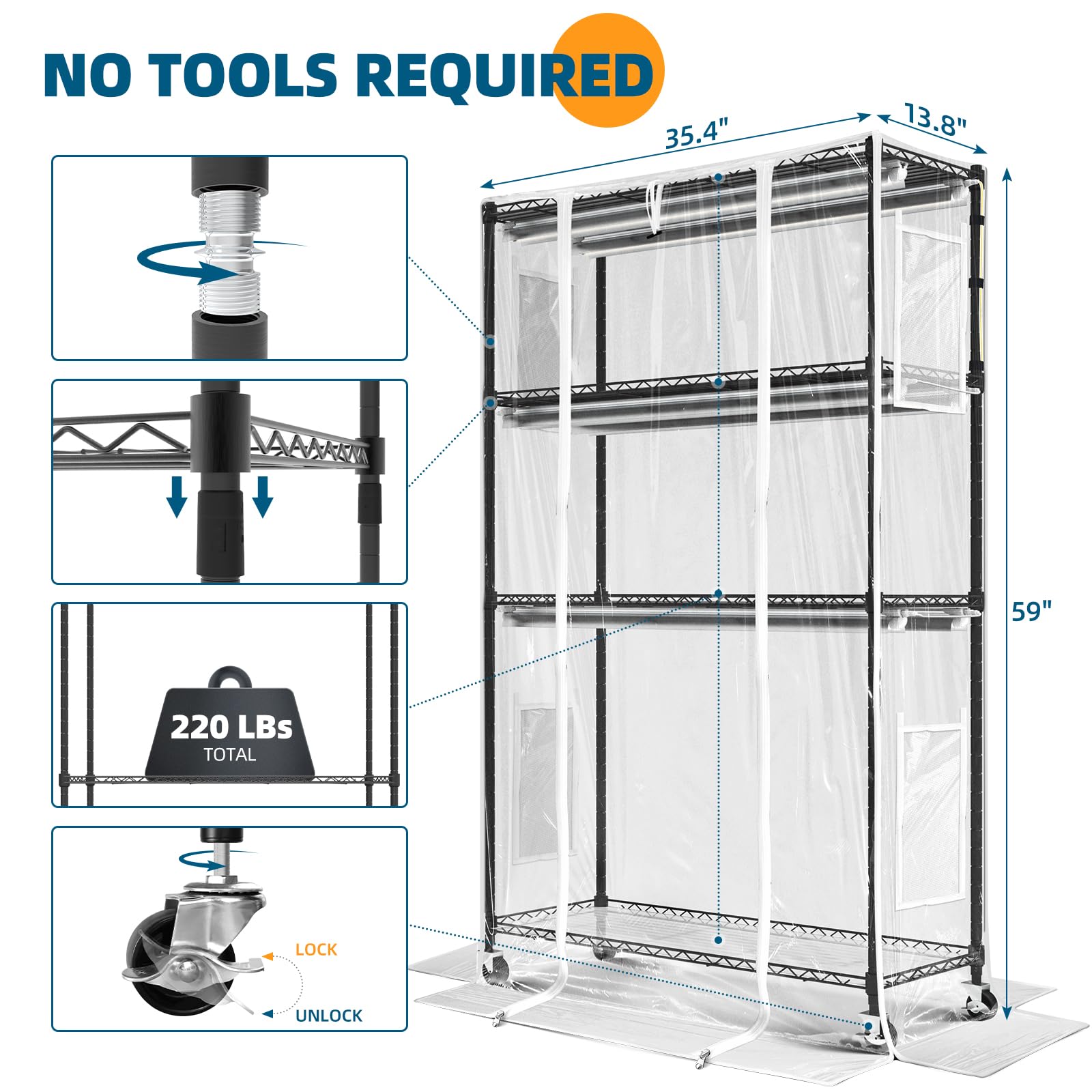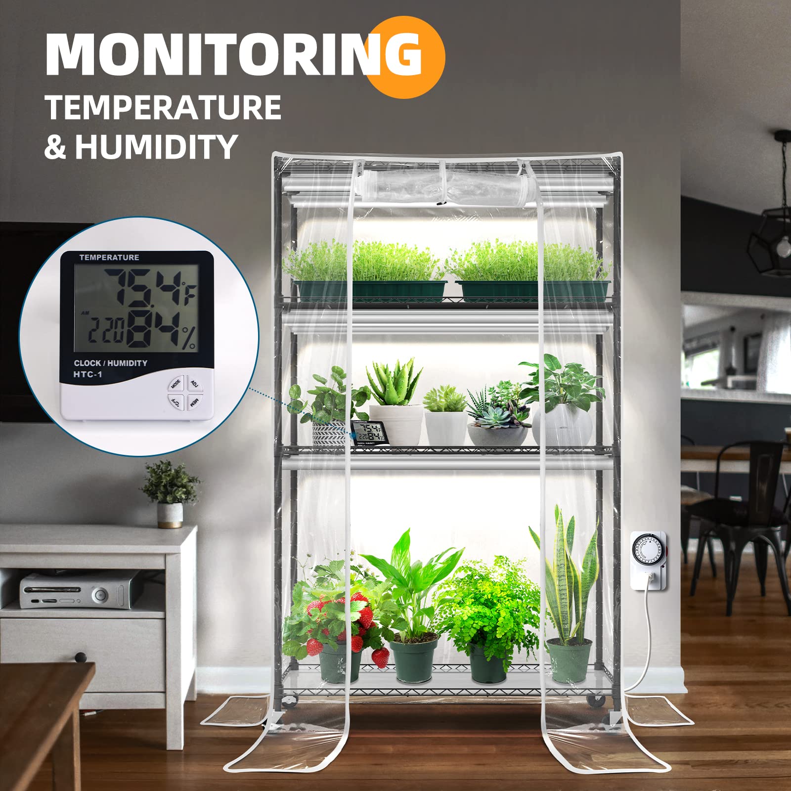 - 4-Tier Construction: The indoor greenhouse features 4 adjustable-height layers, with overall dimensions of 35.4'' L x 13.8'' W x 59'' H and a total weight capacity of 220 lbs. It provides suitable space for your blooming flowers, sprouting plants, microgreens, and vegetables organize