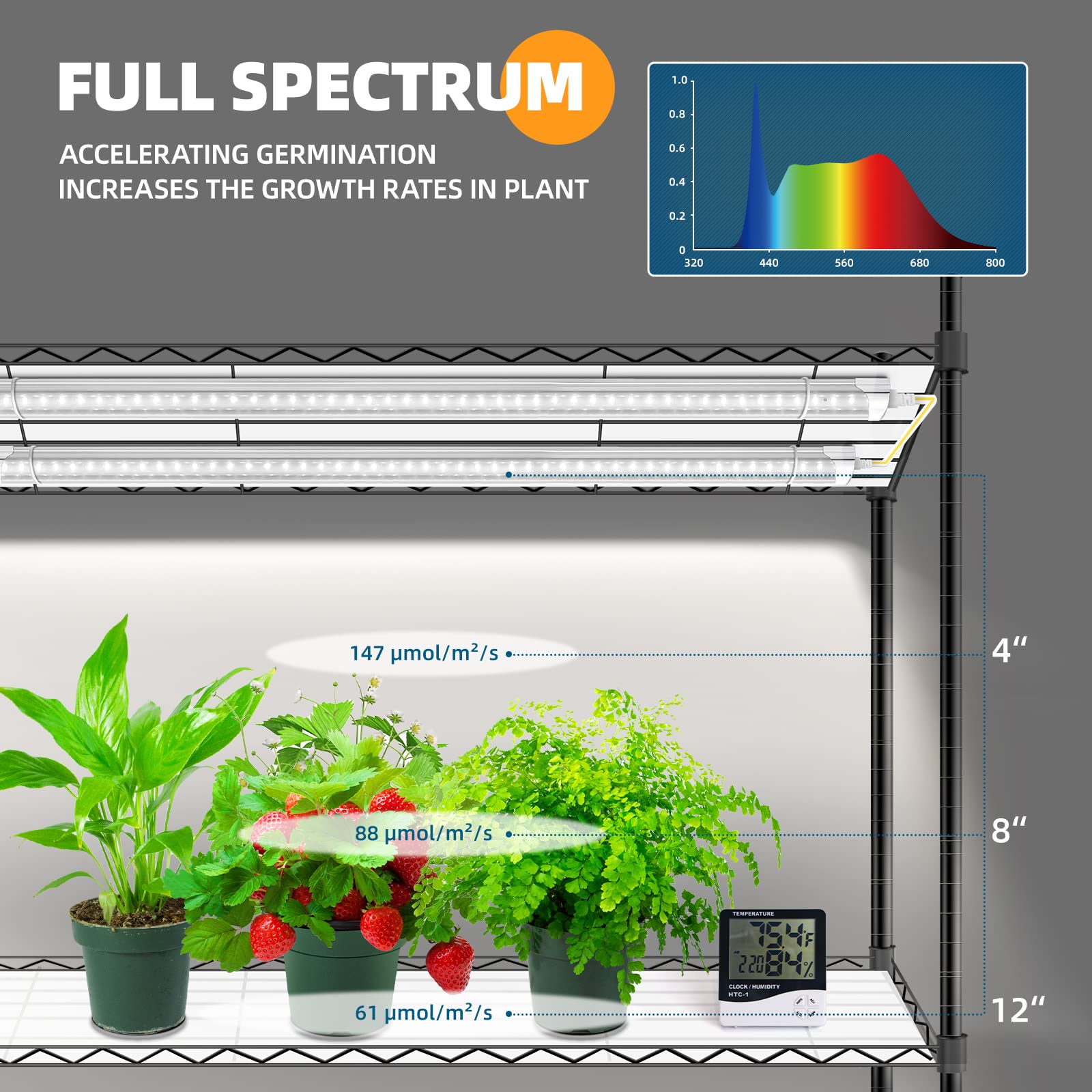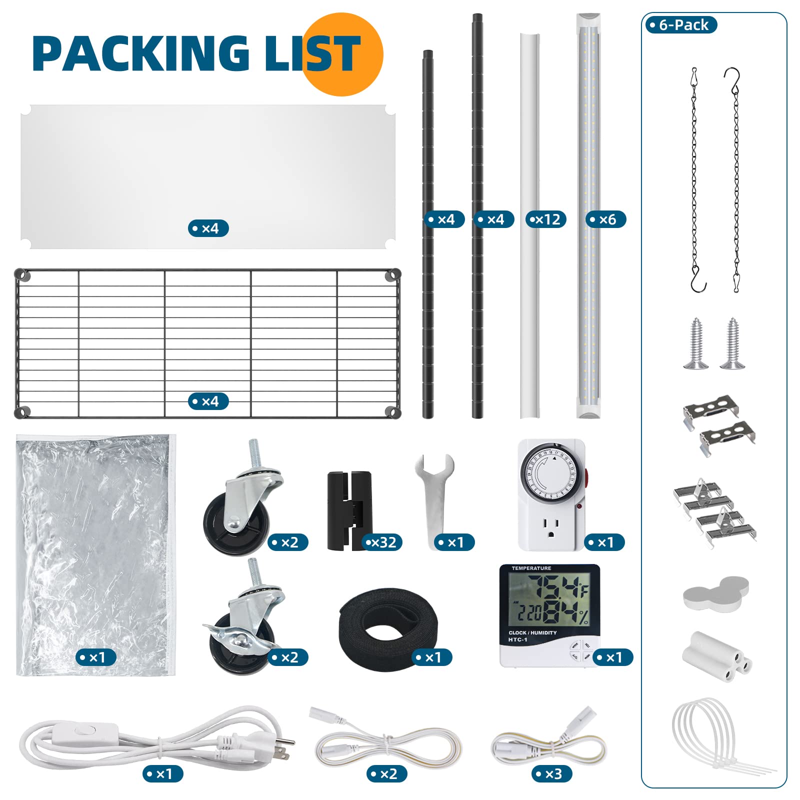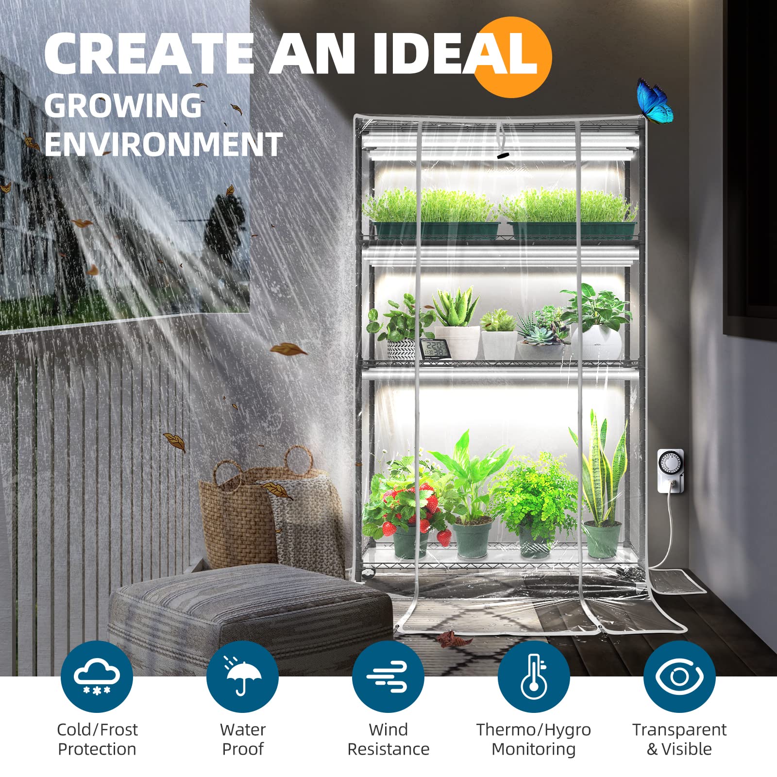 - Full Spectrum Grow Light: The greenhouse set comes with 6pcs of 3ft T8 LED Grow Lights,each equipped with reflectors for enhanced efficiency, promote plant growth, and eye protection. Additionally, the mechanical timer can be programmed your schedule that repeat daily based on your preferences