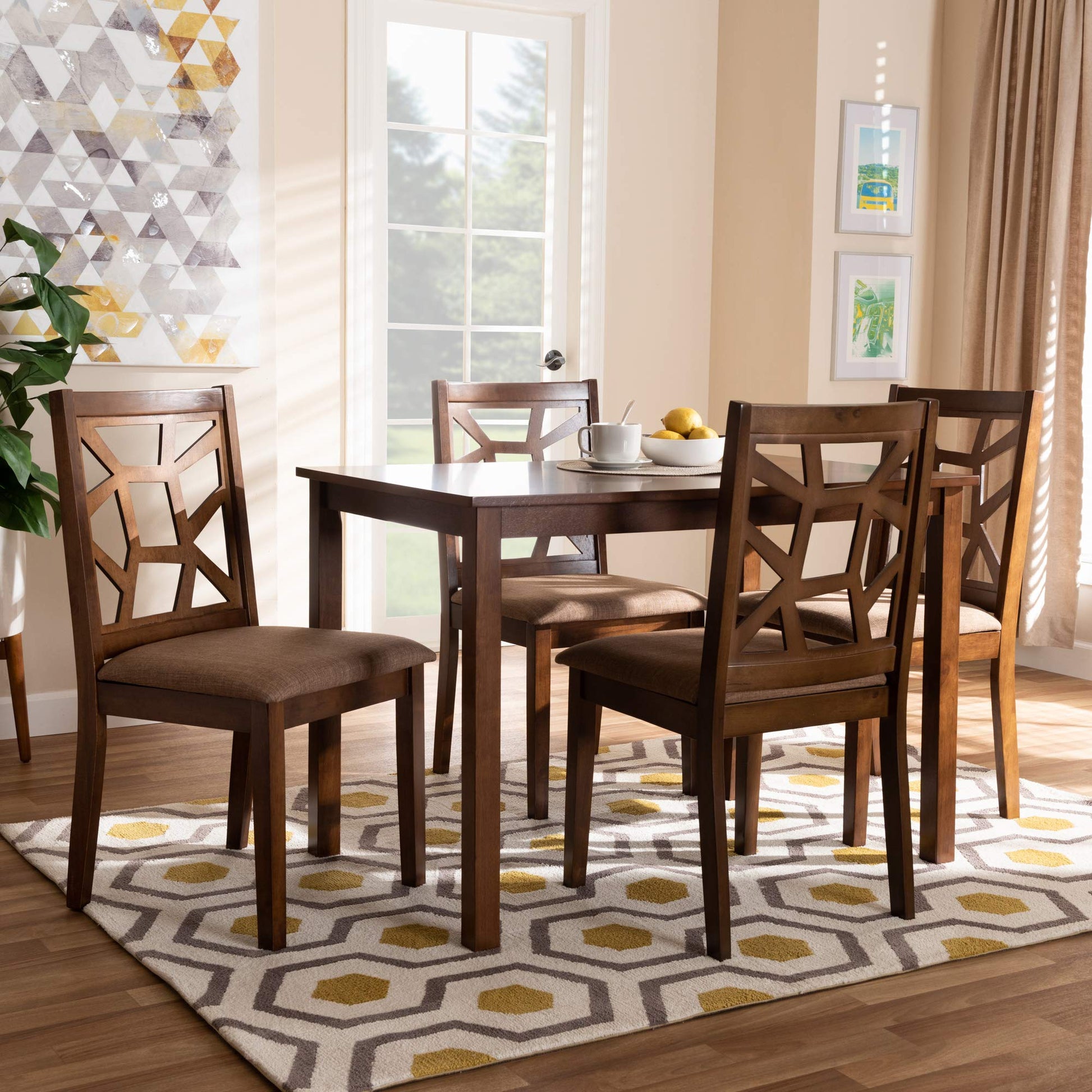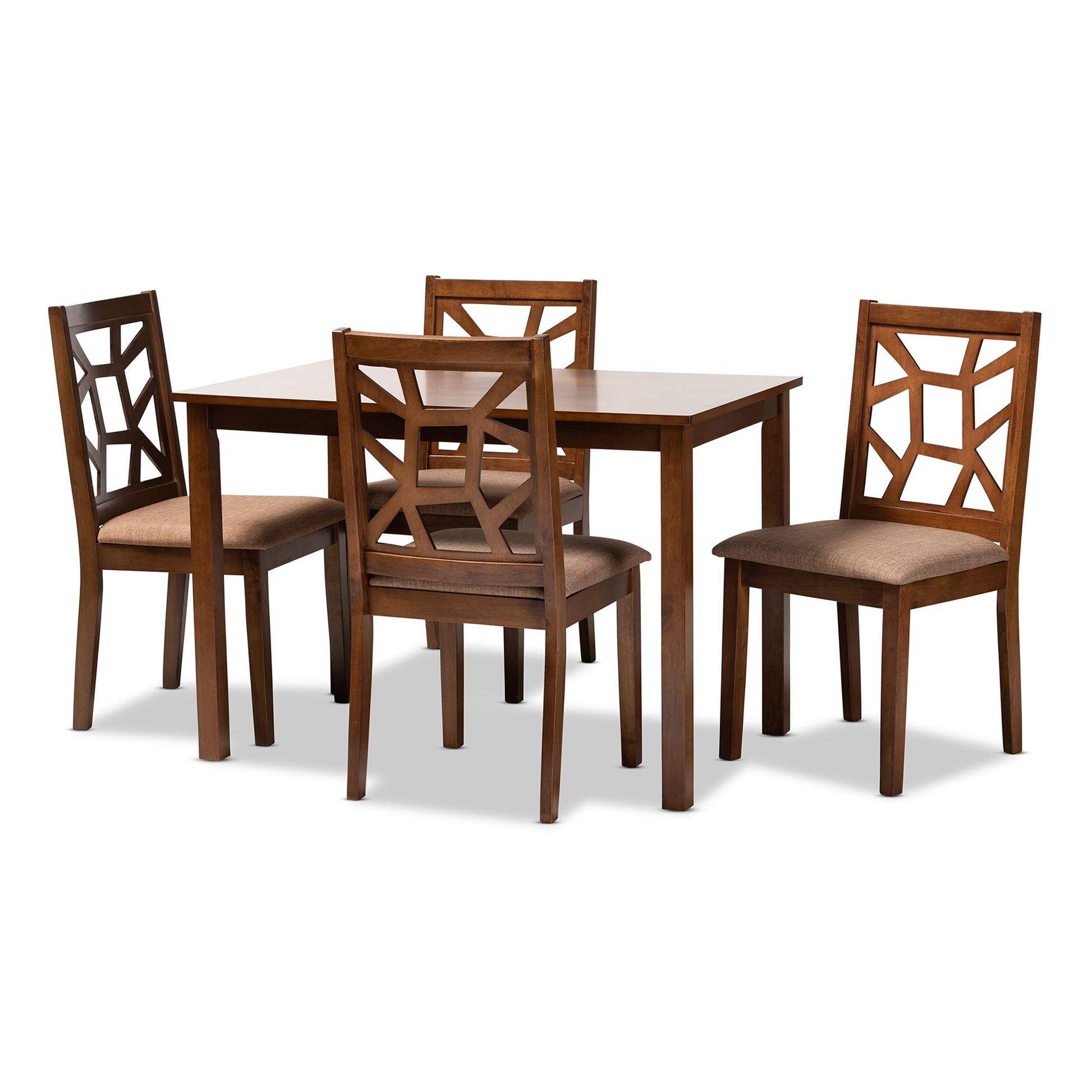 Abilene Dining Set Light Brown Fabric Upholstered and Walnut Brown Finished 5-Piece