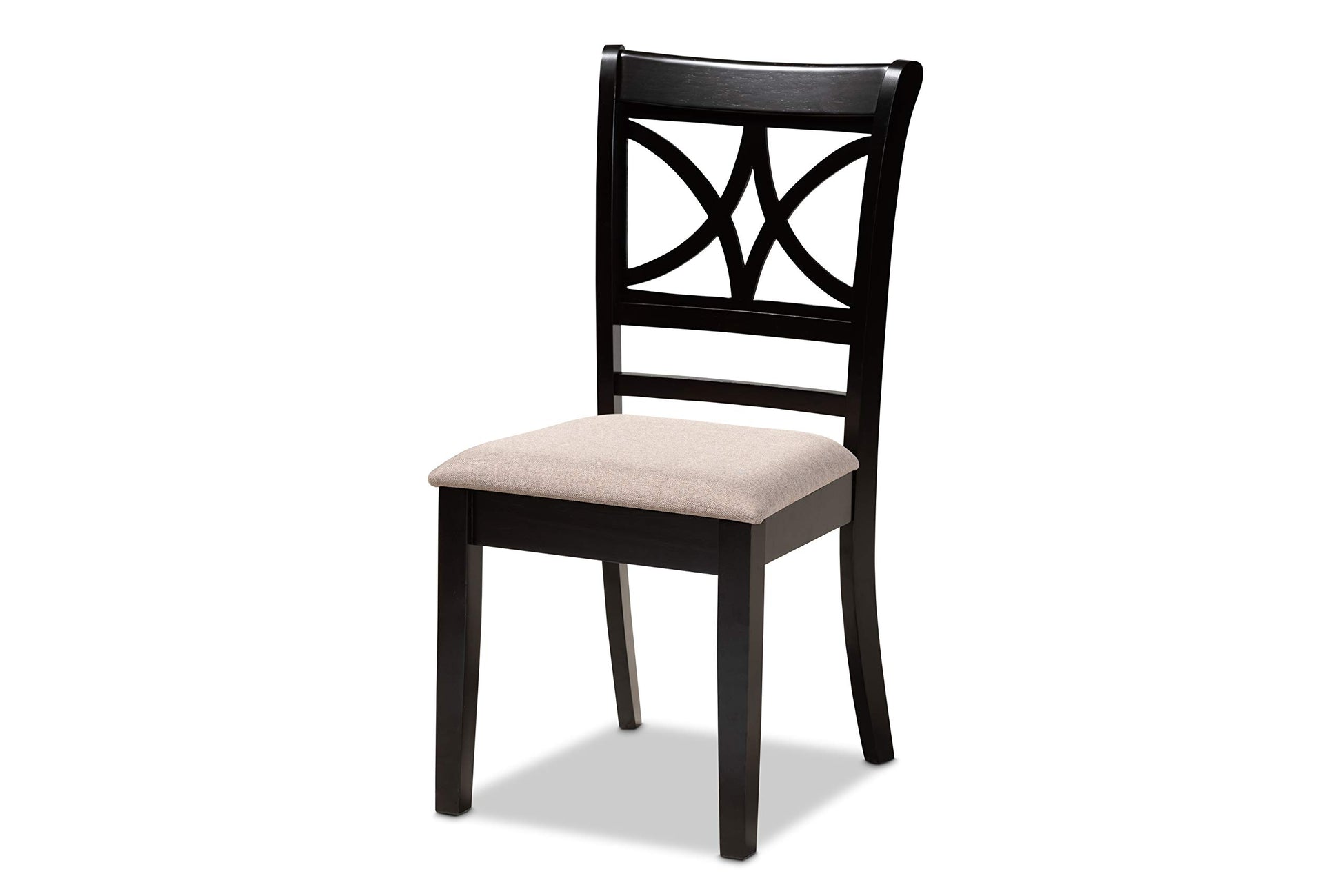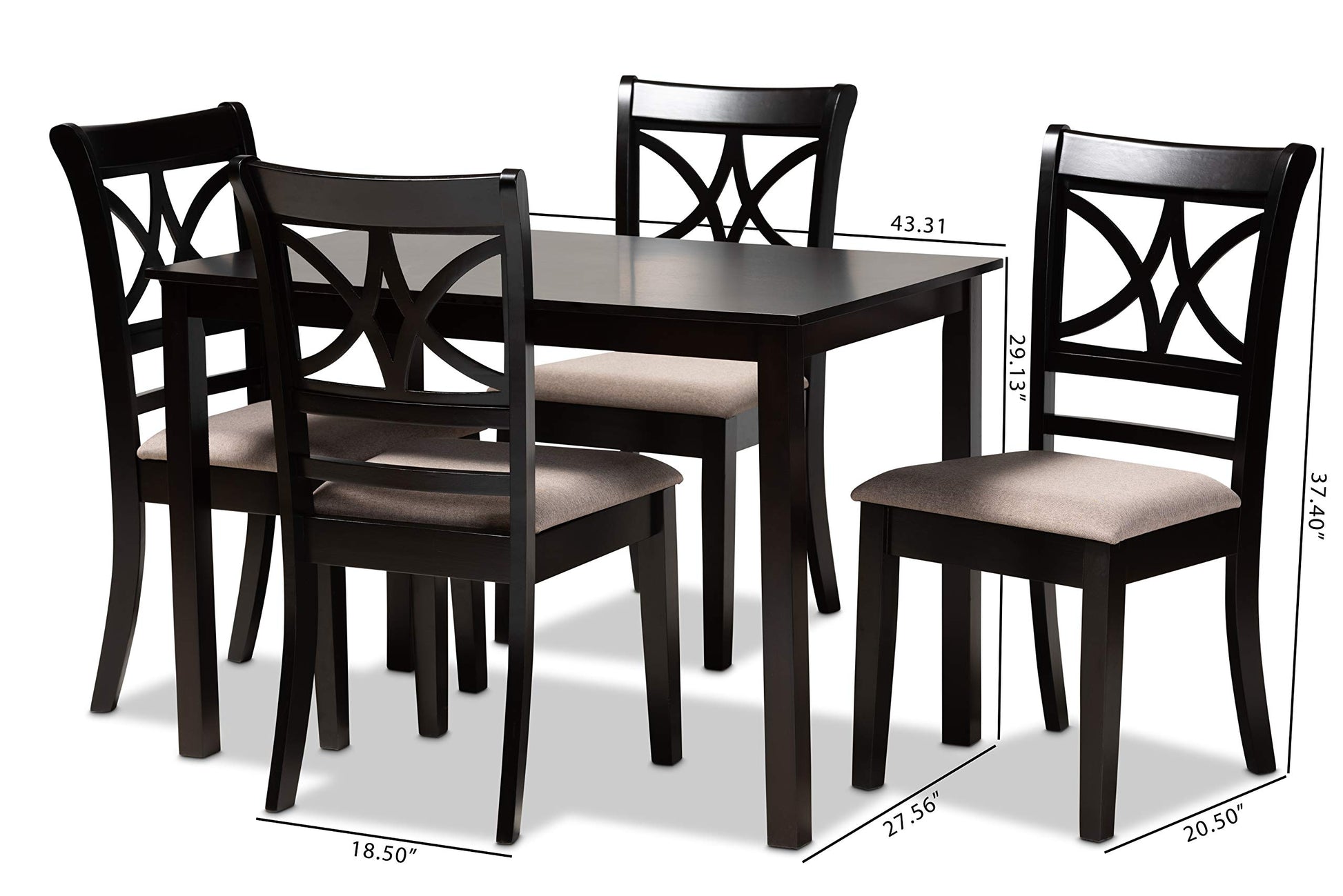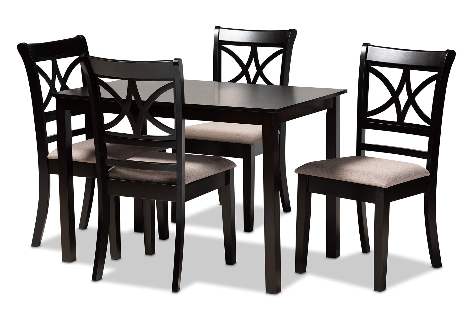 Set and Dining Set Sand Fabric Upholstered and Espresso Brown Finished Wood 5-Piece