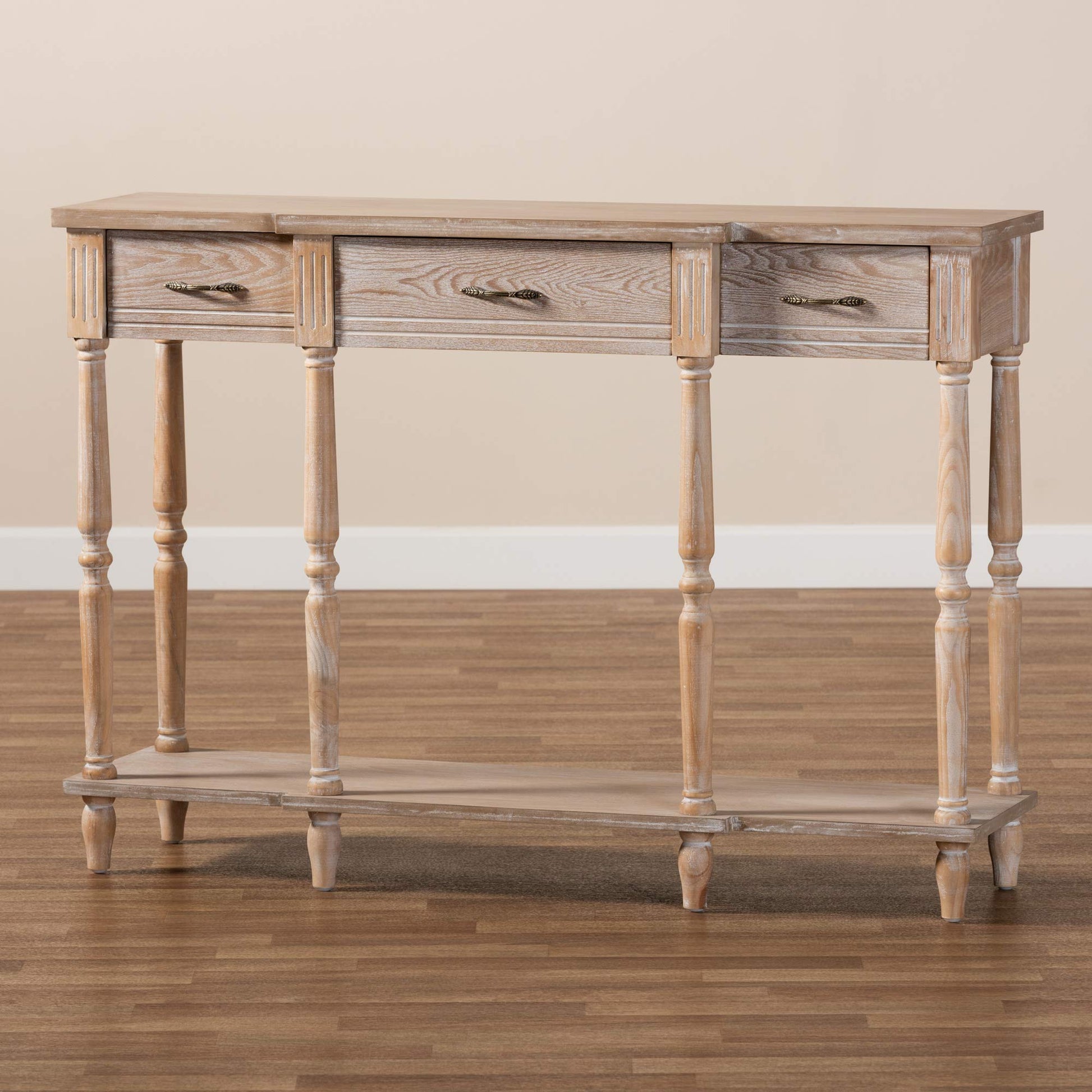 - Whitewashed oak brown finish