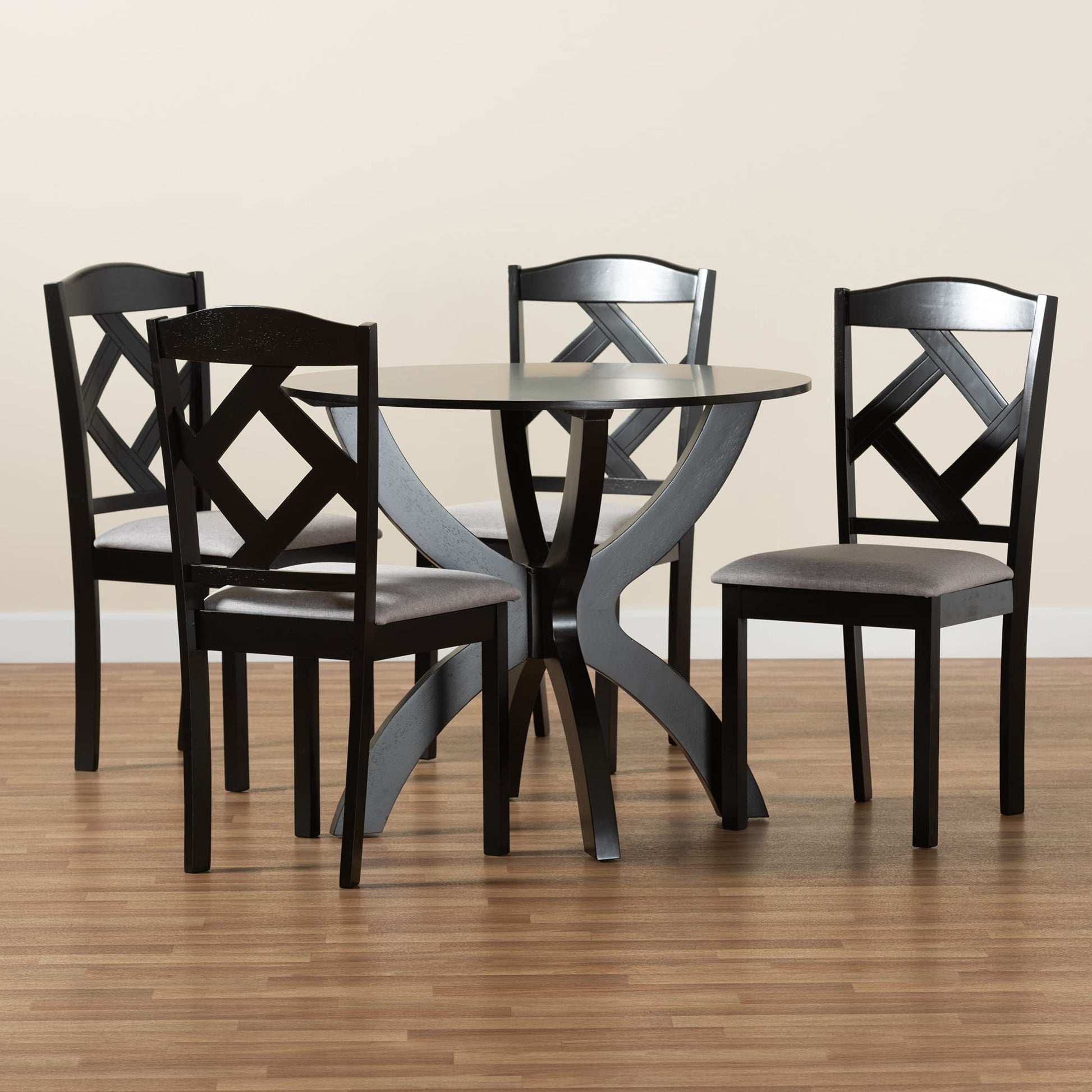 - Modern set includes four (4) dining chairs and one (1) table