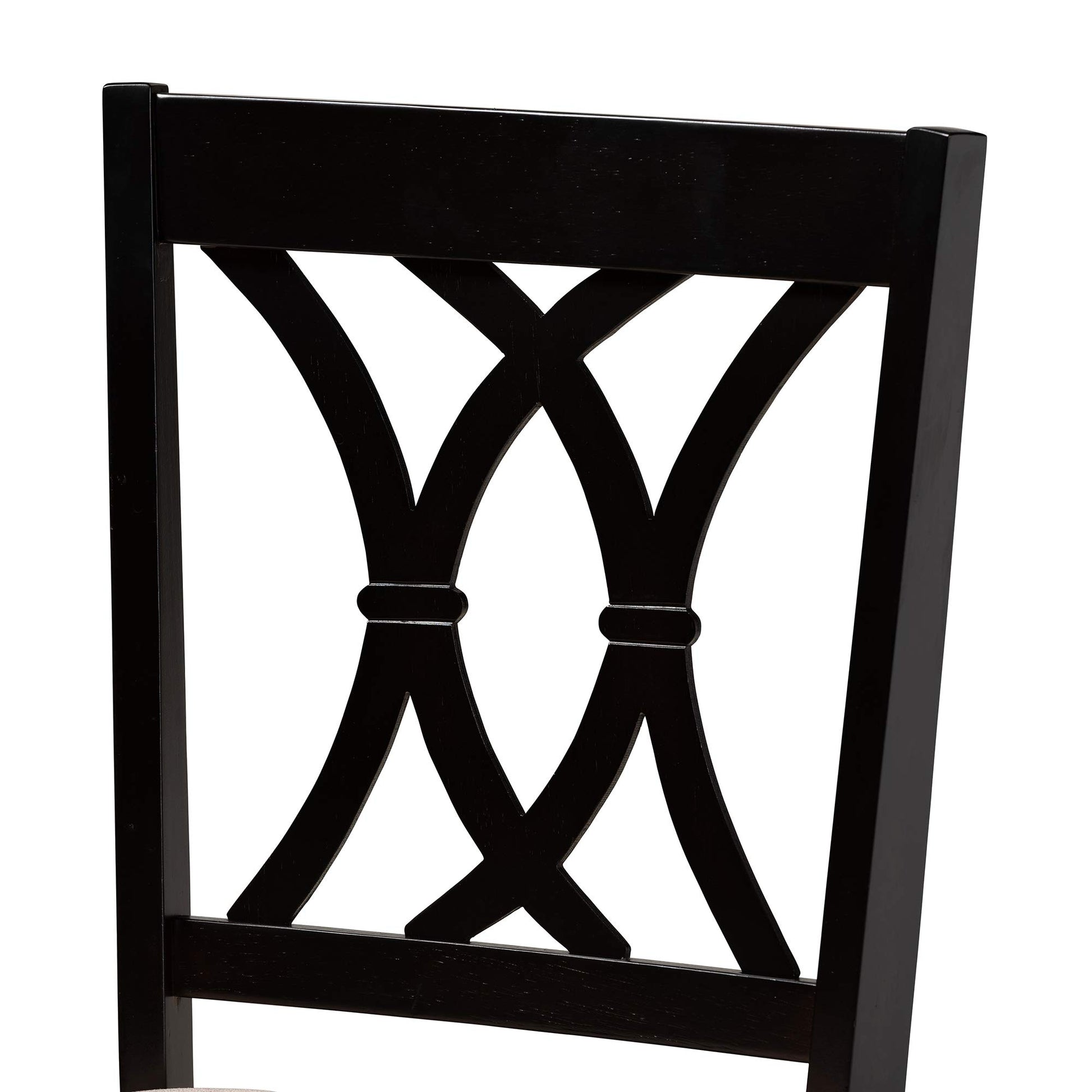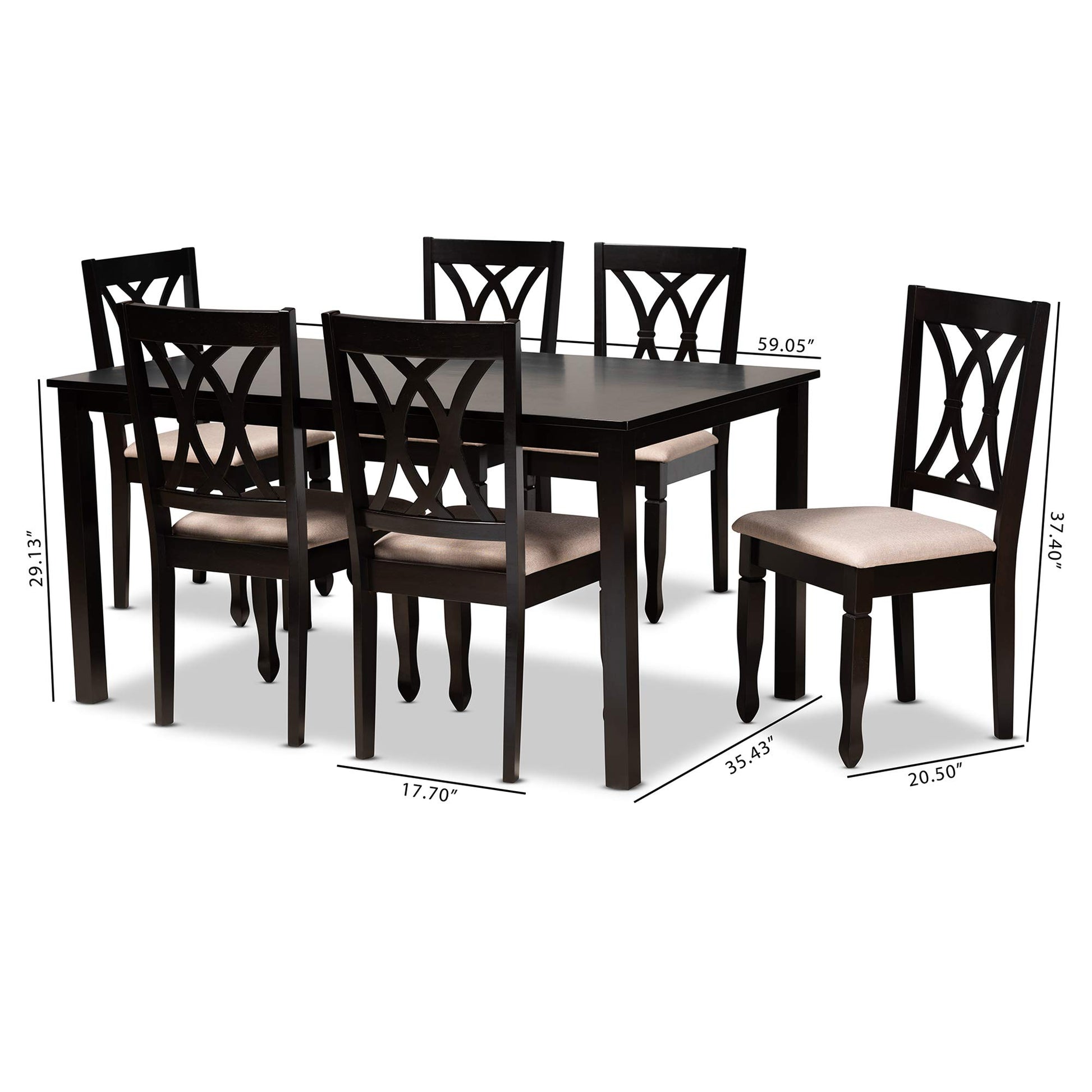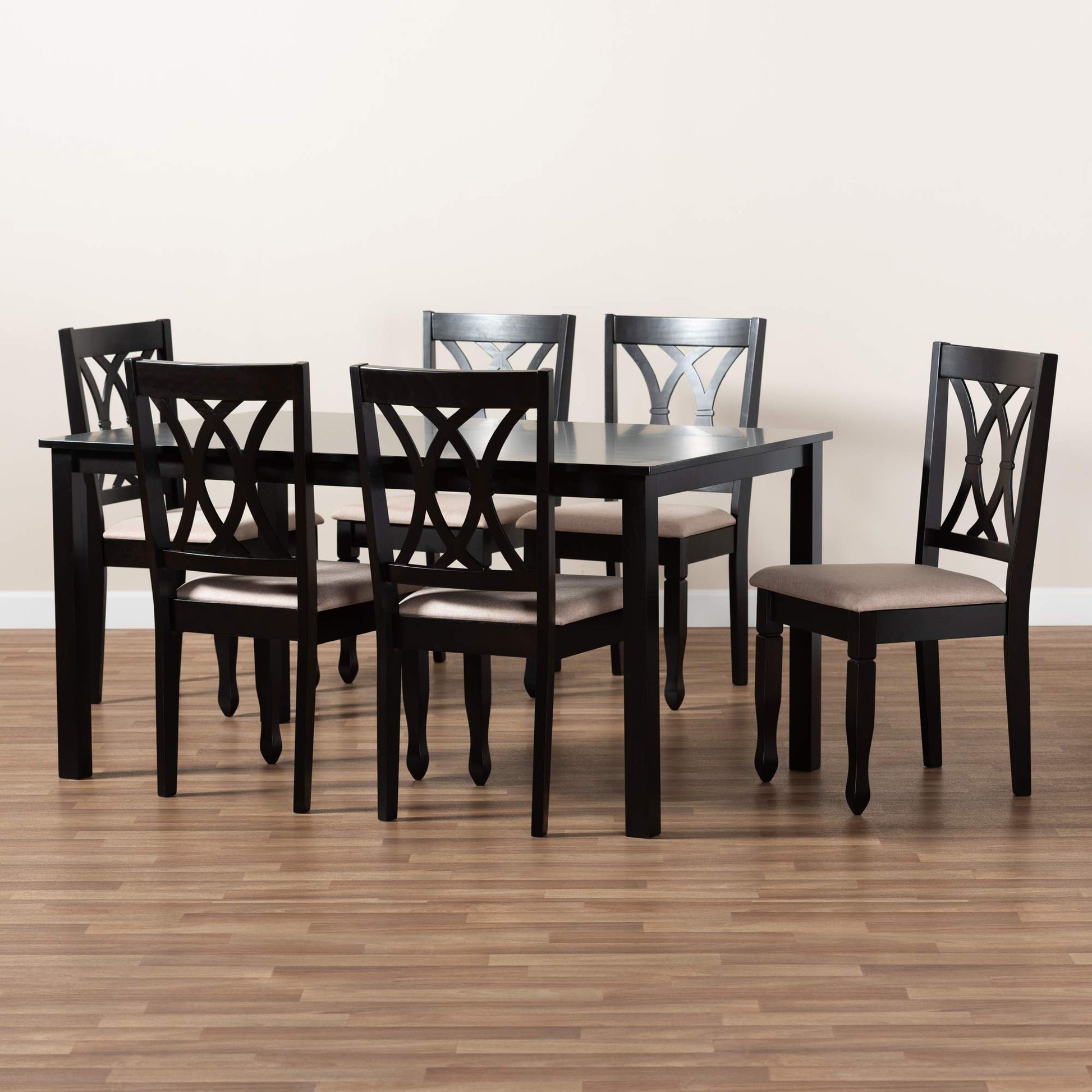 a Dining Set and Dining Set Sand Fabric Upholstered Espresso Brown Finished Wood